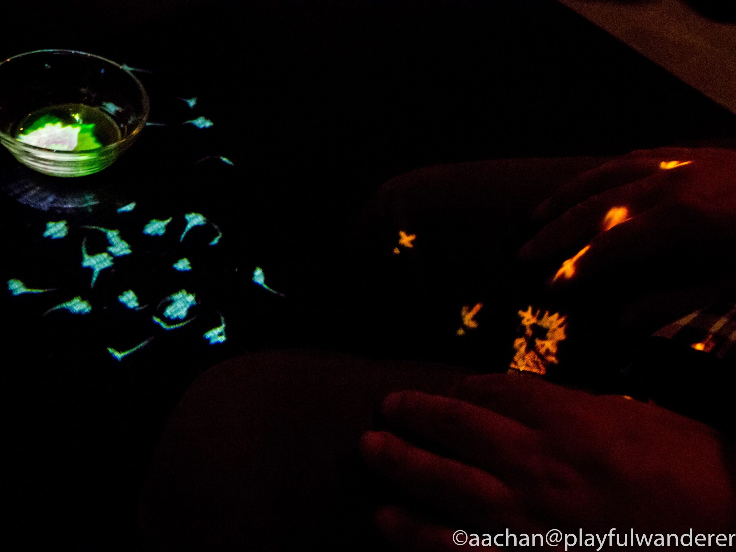茶碗を動かすと、床に残った花が散ってゆき、茶碗の中に新しい花が生まれます。