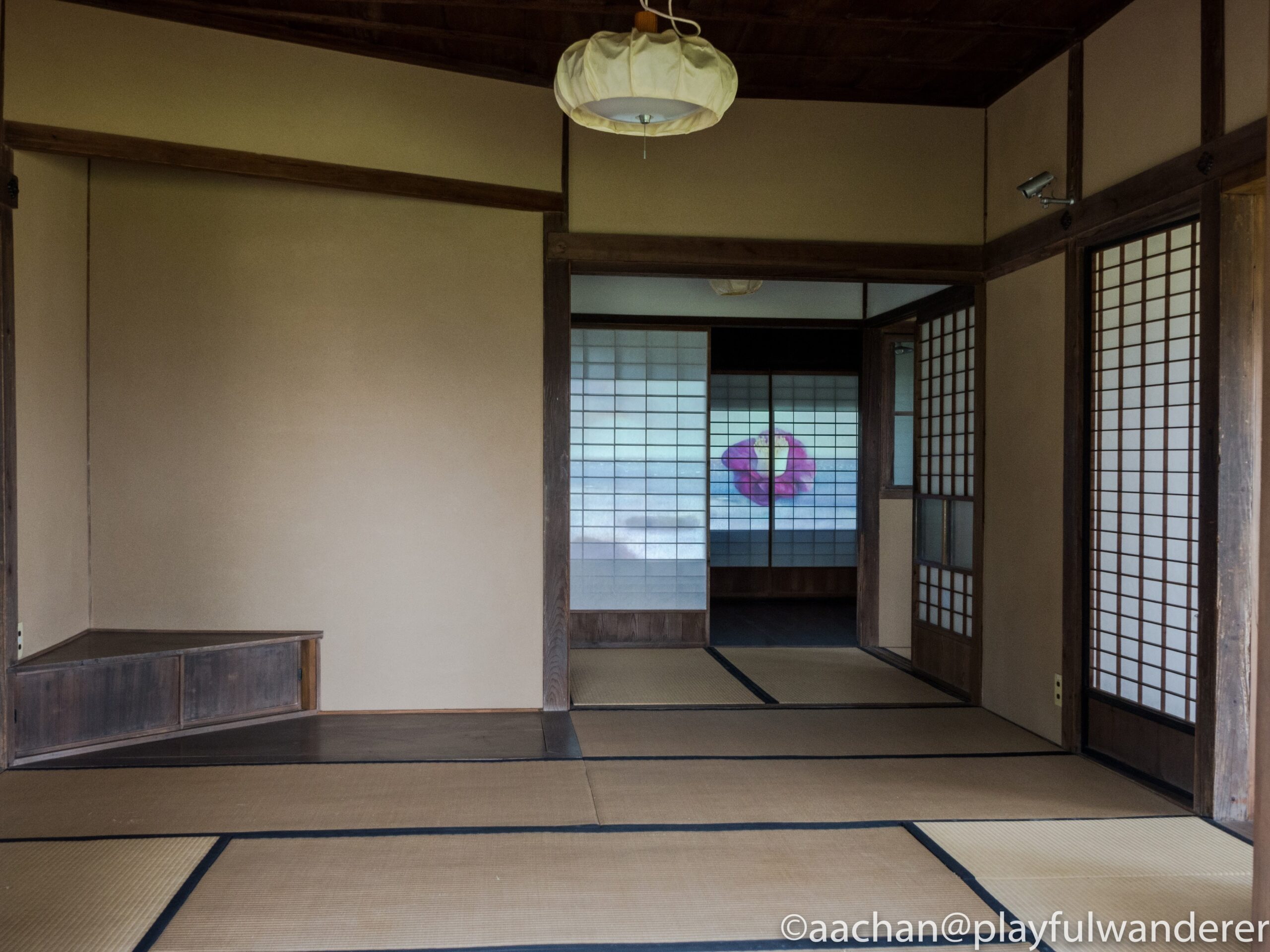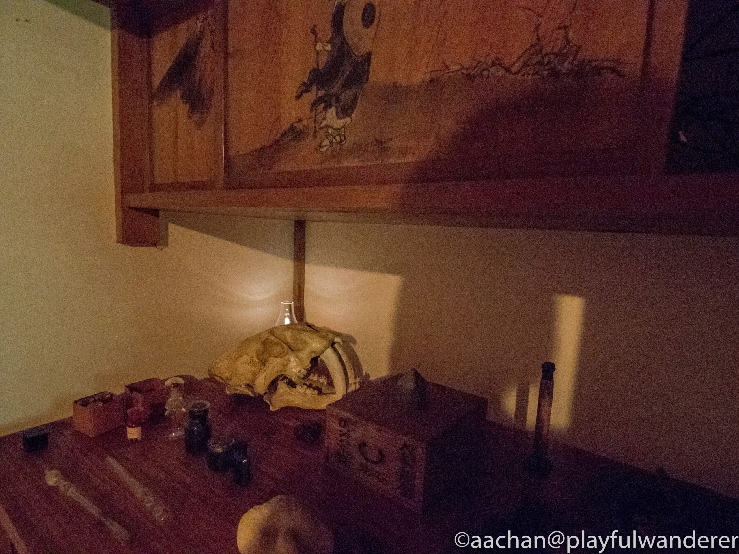 母屋の2Fに上がった部屋はかなり薄暗く、電燈の届かない所は陰になっていて見づらい。