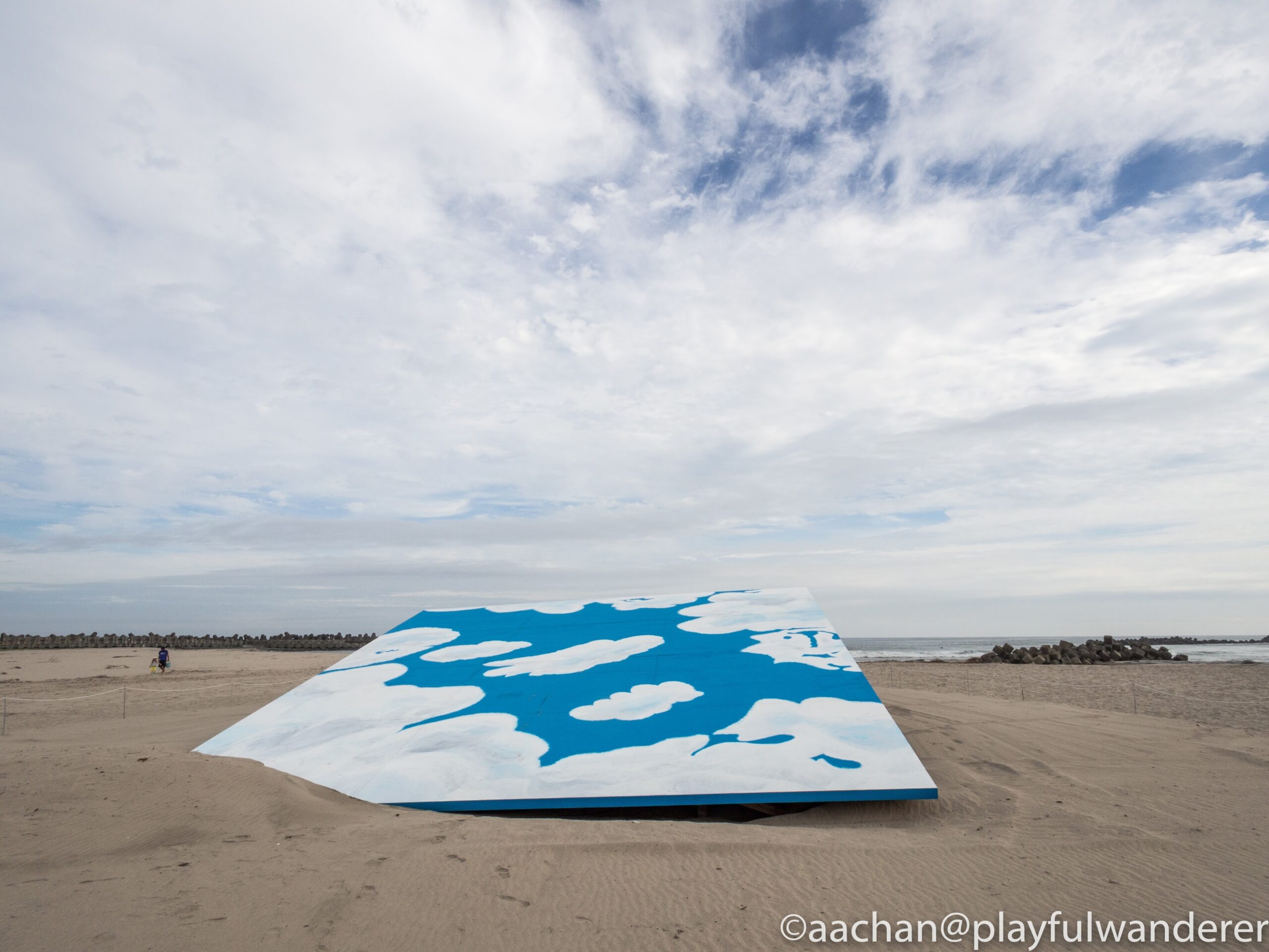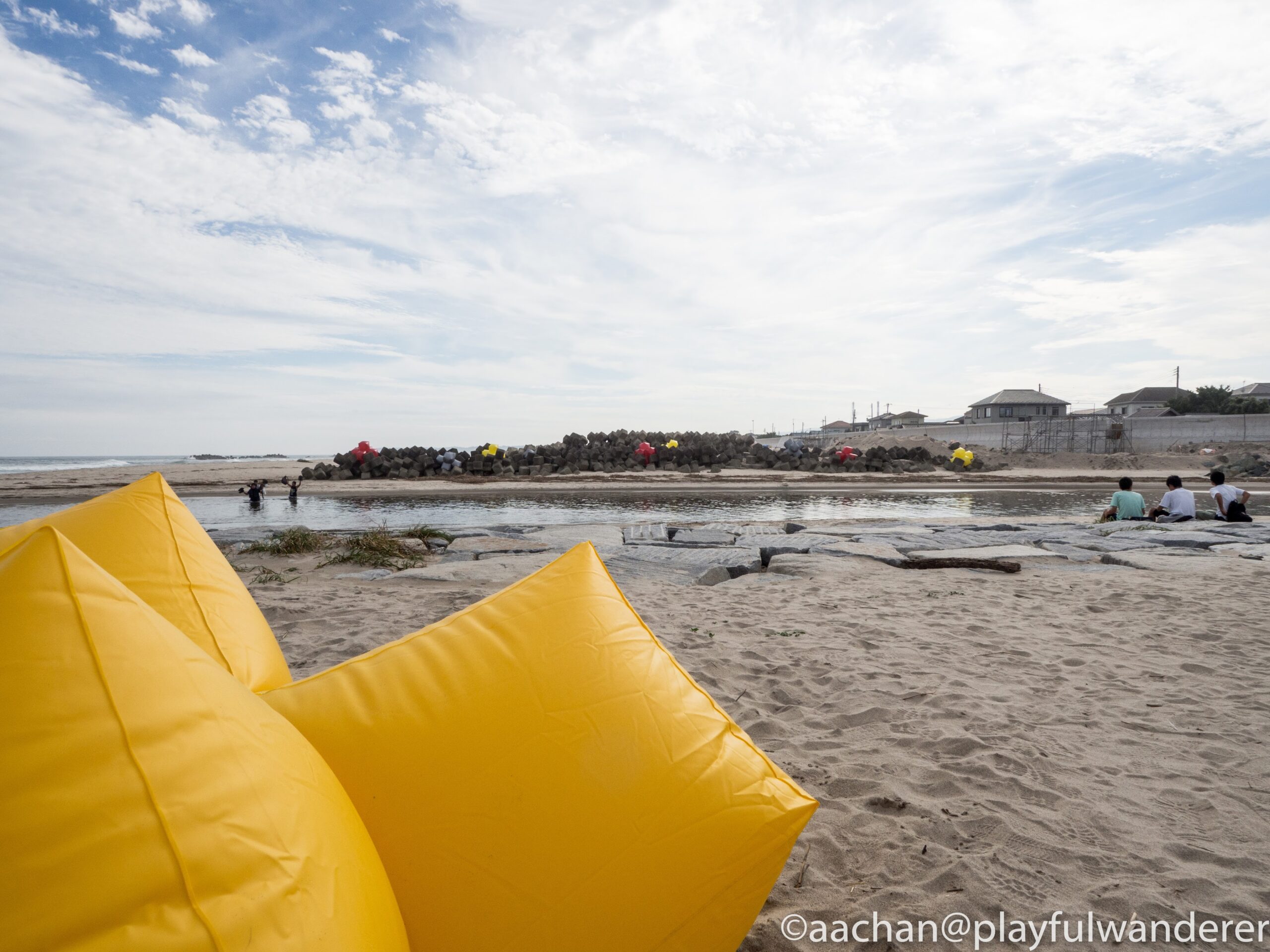 テトラポッドの方は空気をいれたカラフルなテトラポッド型のビニール素材のが混じってるんだけど、空気が抜けてしなび気味。もしかして台風で飛ばされちゃって数も減ってるとかあるかも!?