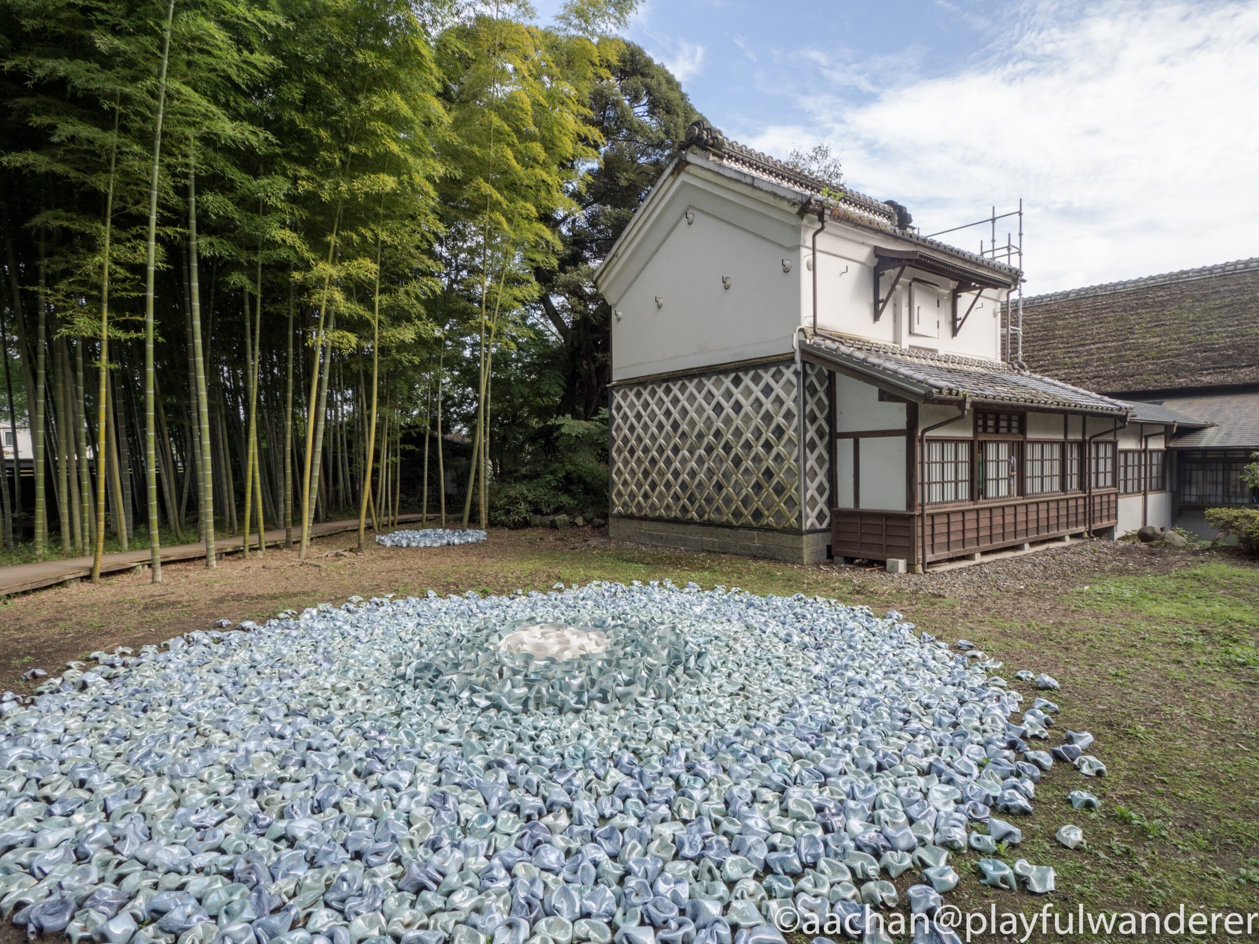 まず係りの方から右回りでぐるっと庭を一周してくると作品あるからと言われて周囲から散策。