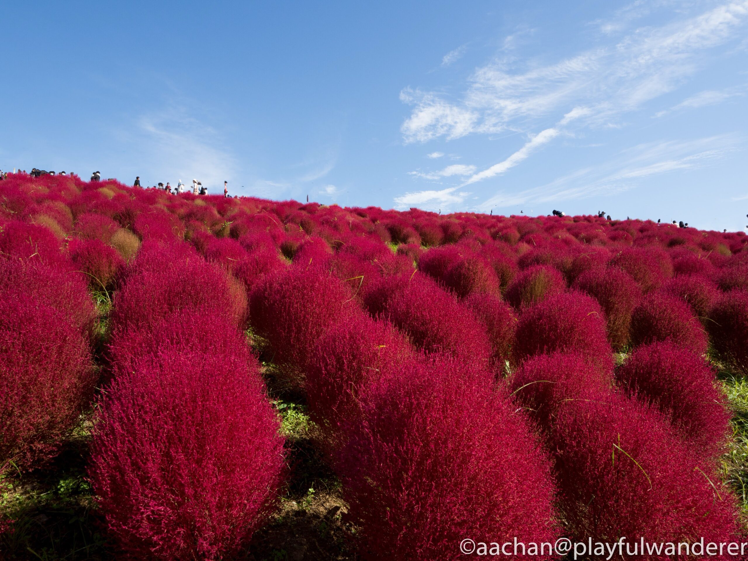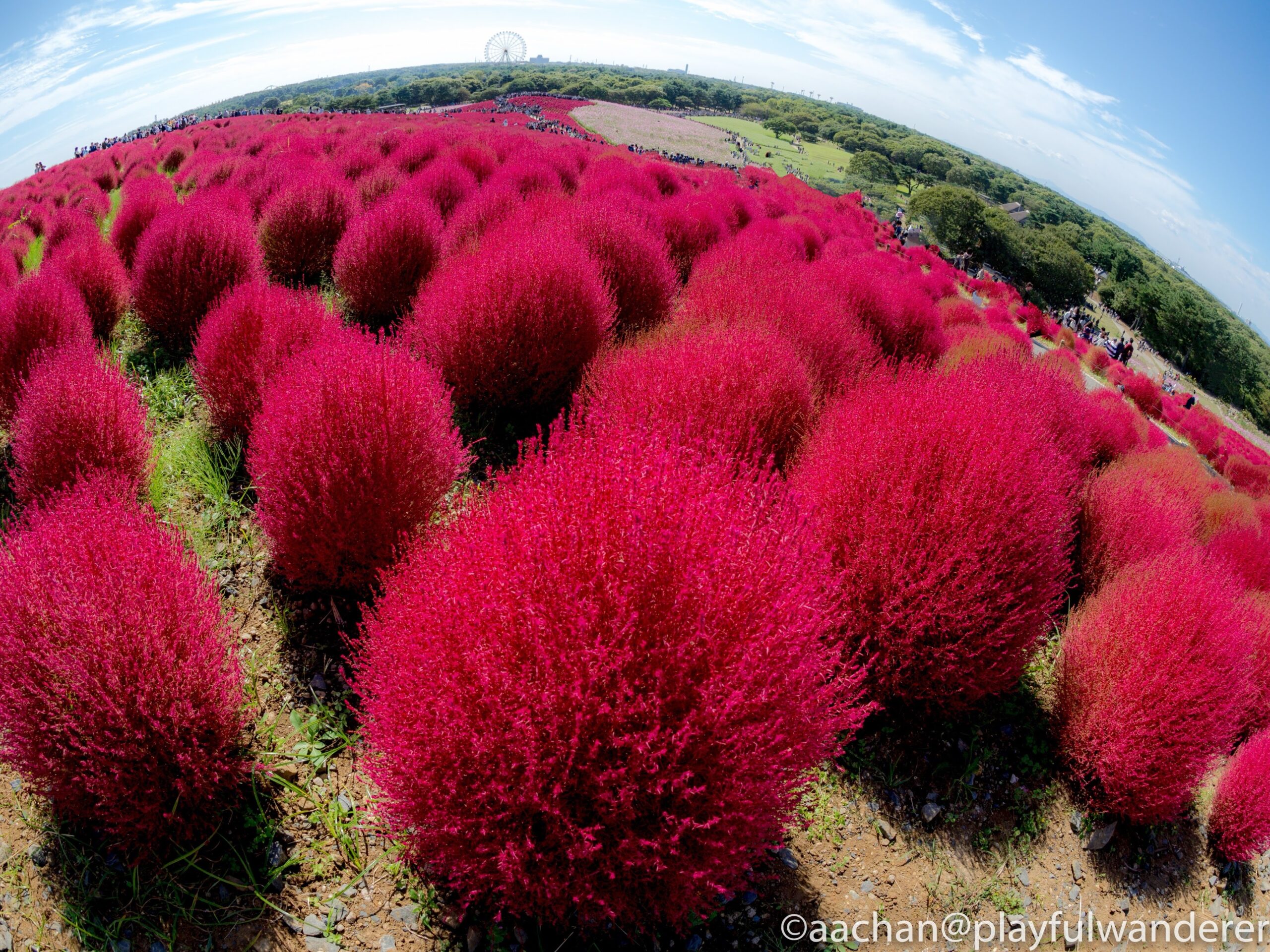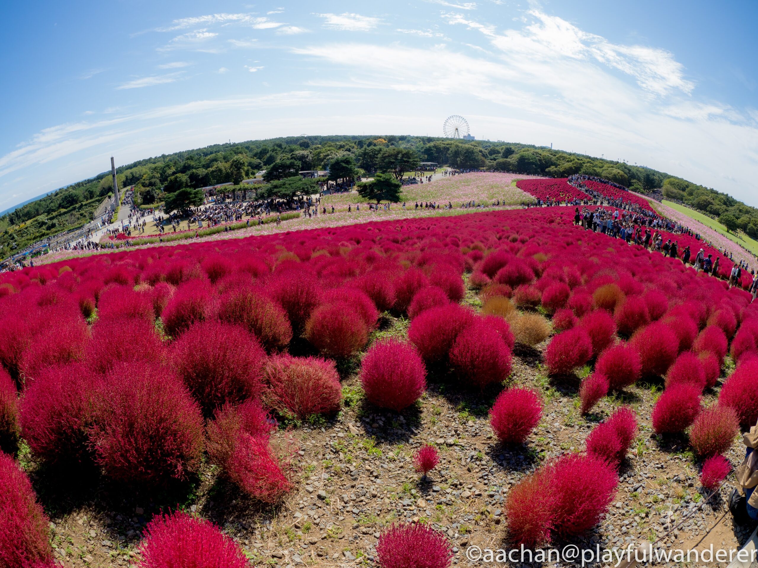 9月には緑だったコキアが紅葉してコスモスも見頃という情報を見て、「ひたち海浜公園」にまた行ってきました。
