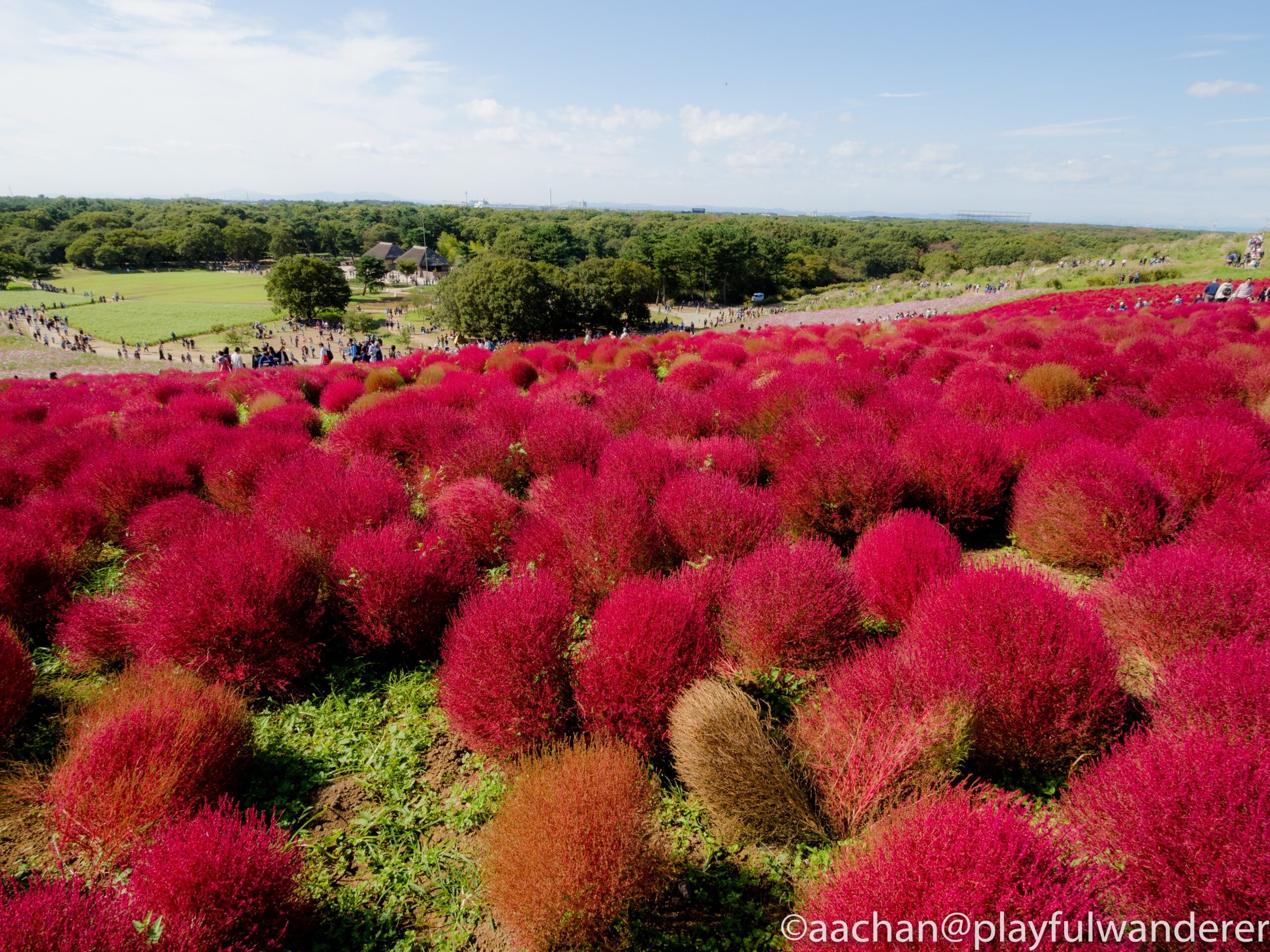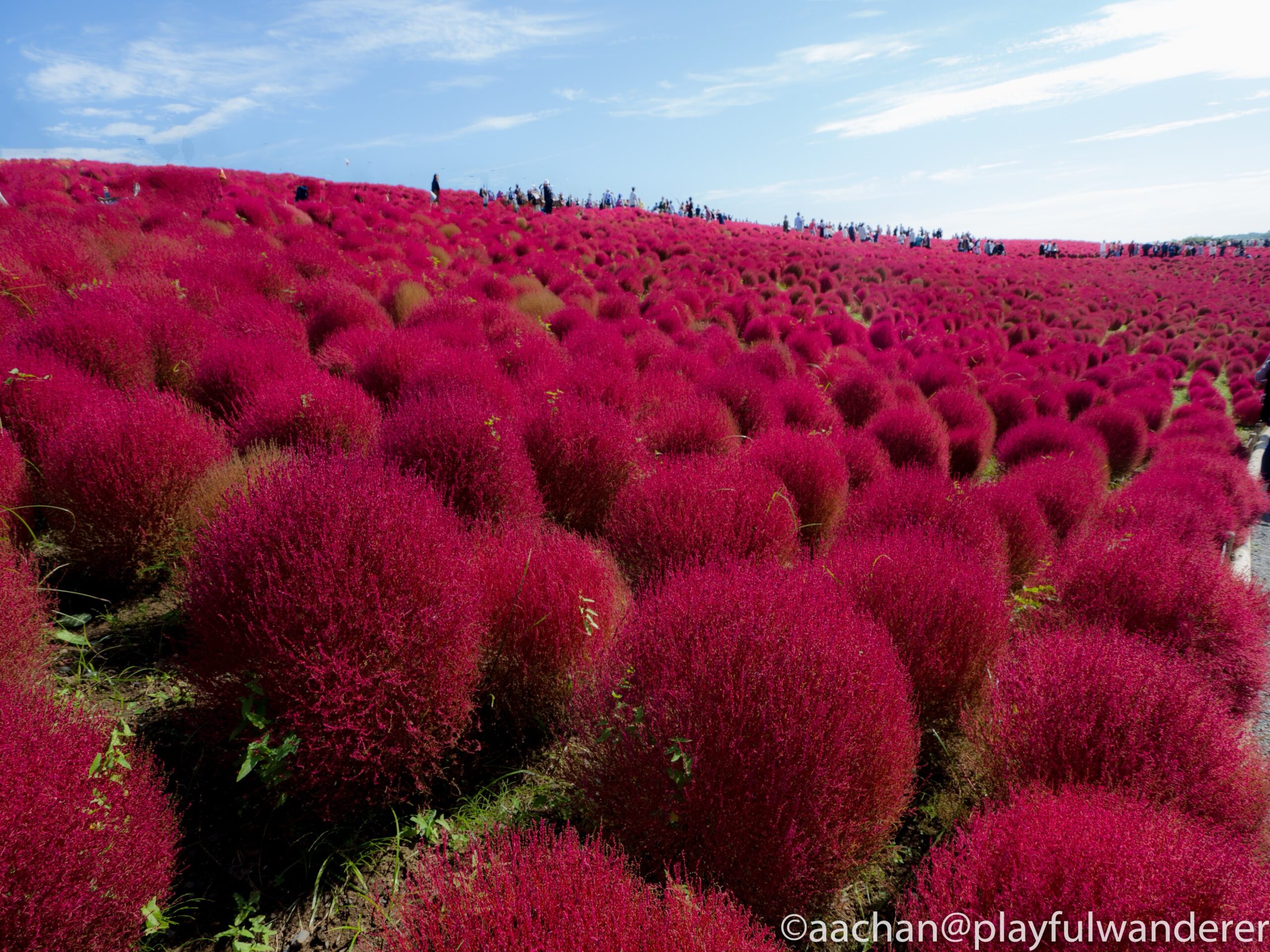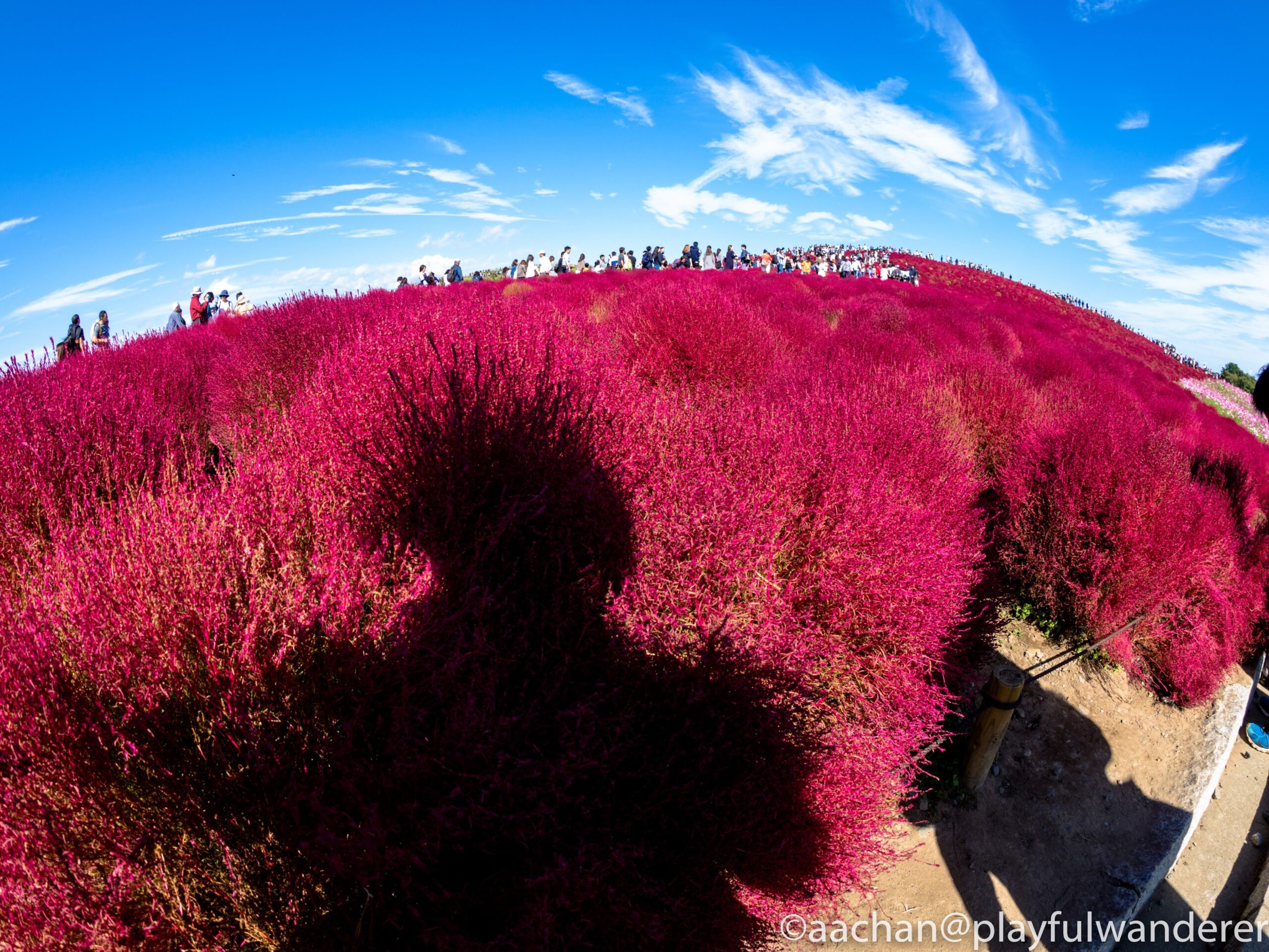 9月には緑だったコキアが紅葉してコスモスも見頃という情報を見て、「ひたち海浜公園」にまた行ってきました。
