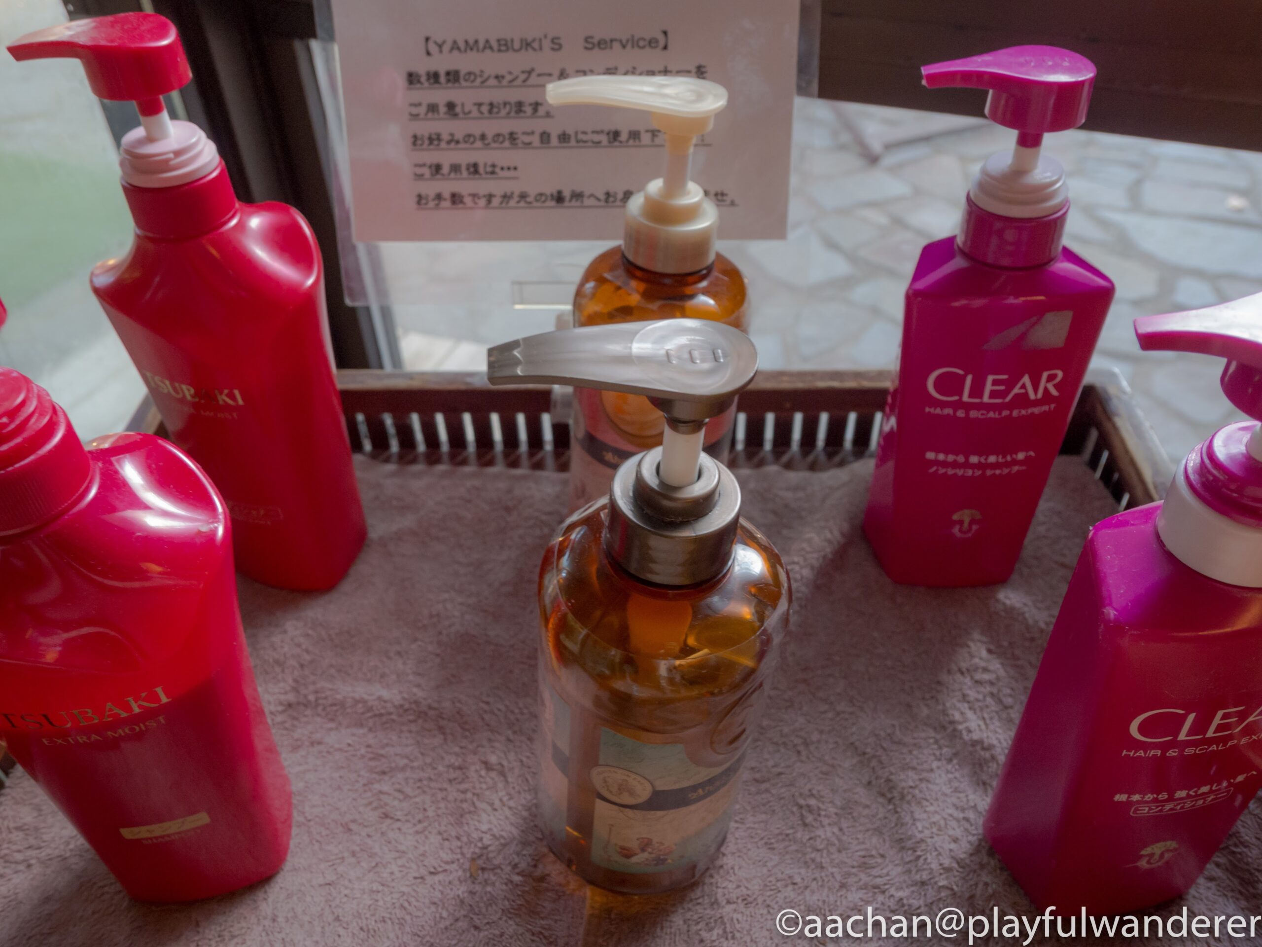 内風呂にシャンプー、コンディショナー、ボディソープも備え付けてあります。