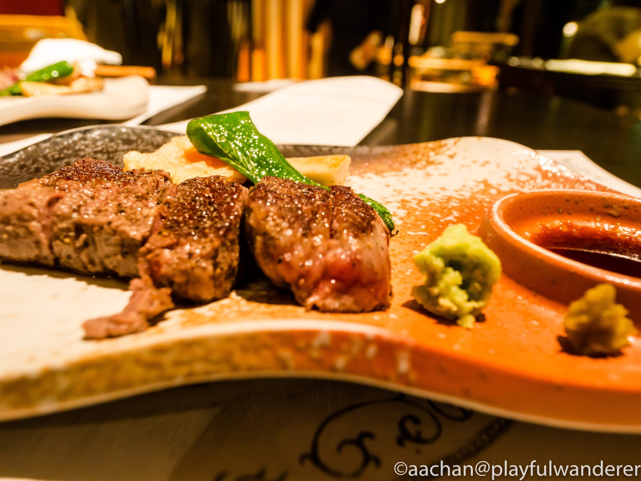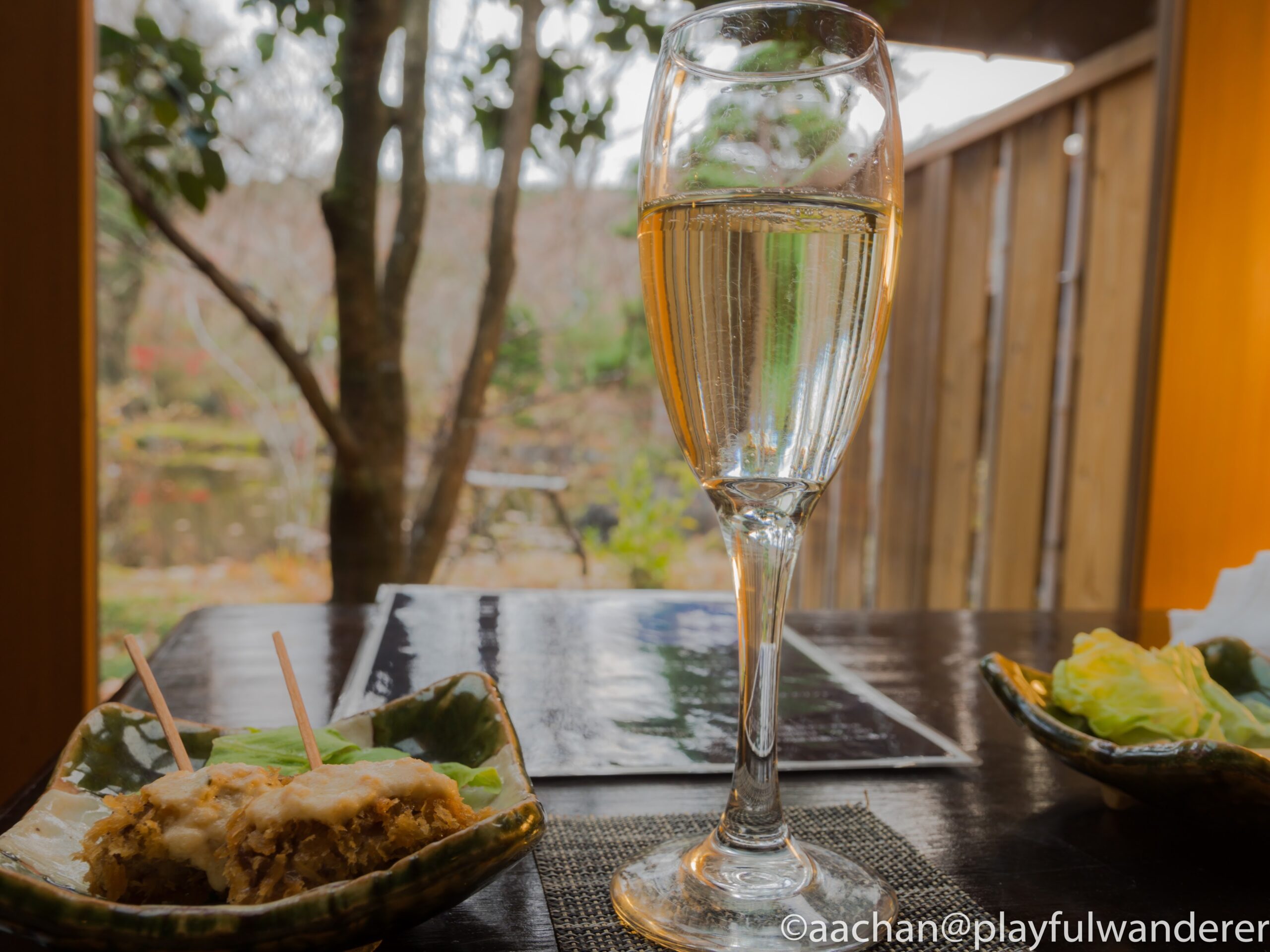 私が来たときは、ビール、スパークリングワイン、烏龍茶から選べて仙台牛の包み焼きがついてきた。
