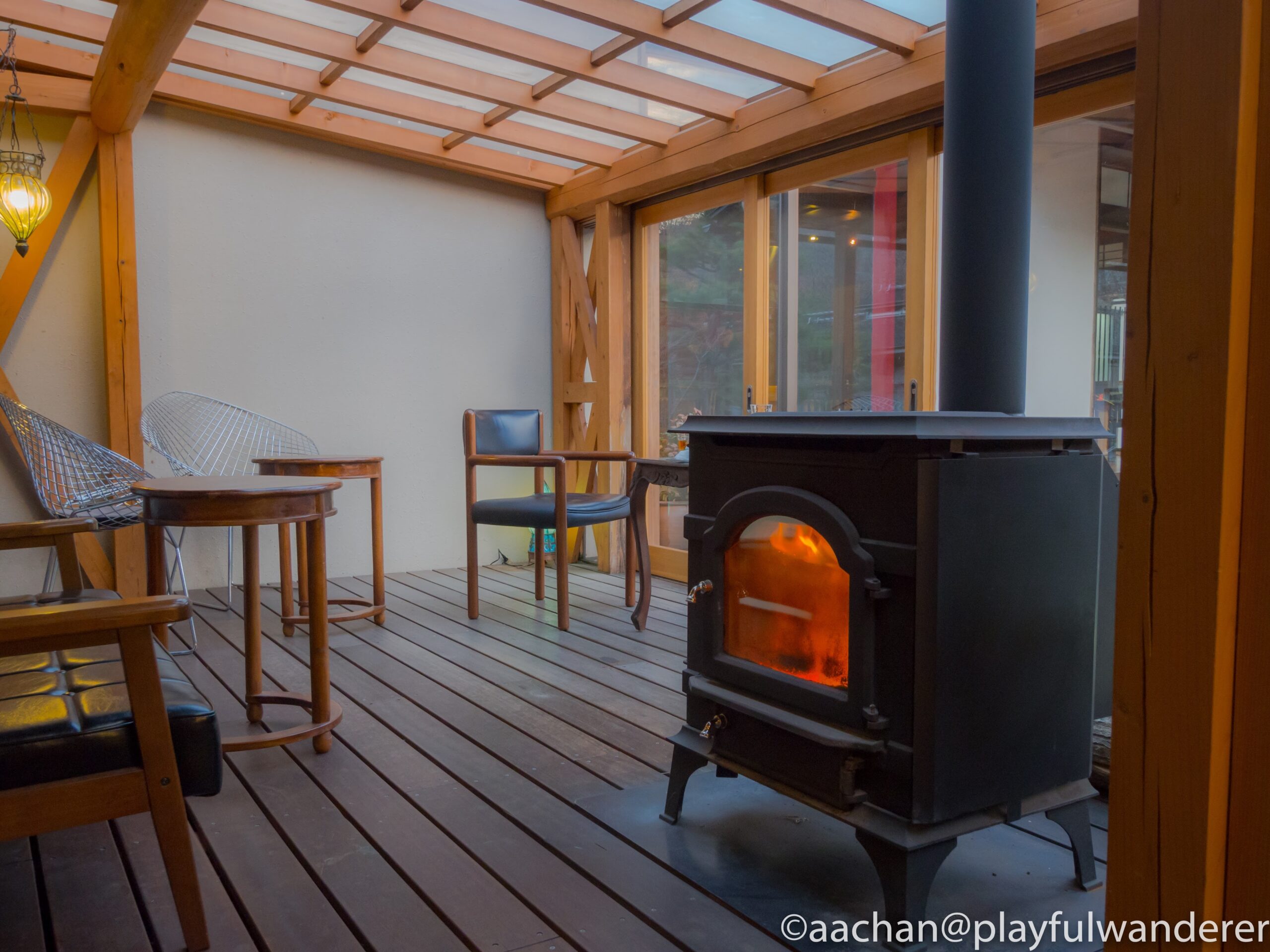 開放的なガラス窓で覆われた明るい内風呂だったが、実は冬季以外は全開放した半露天になるようだ。