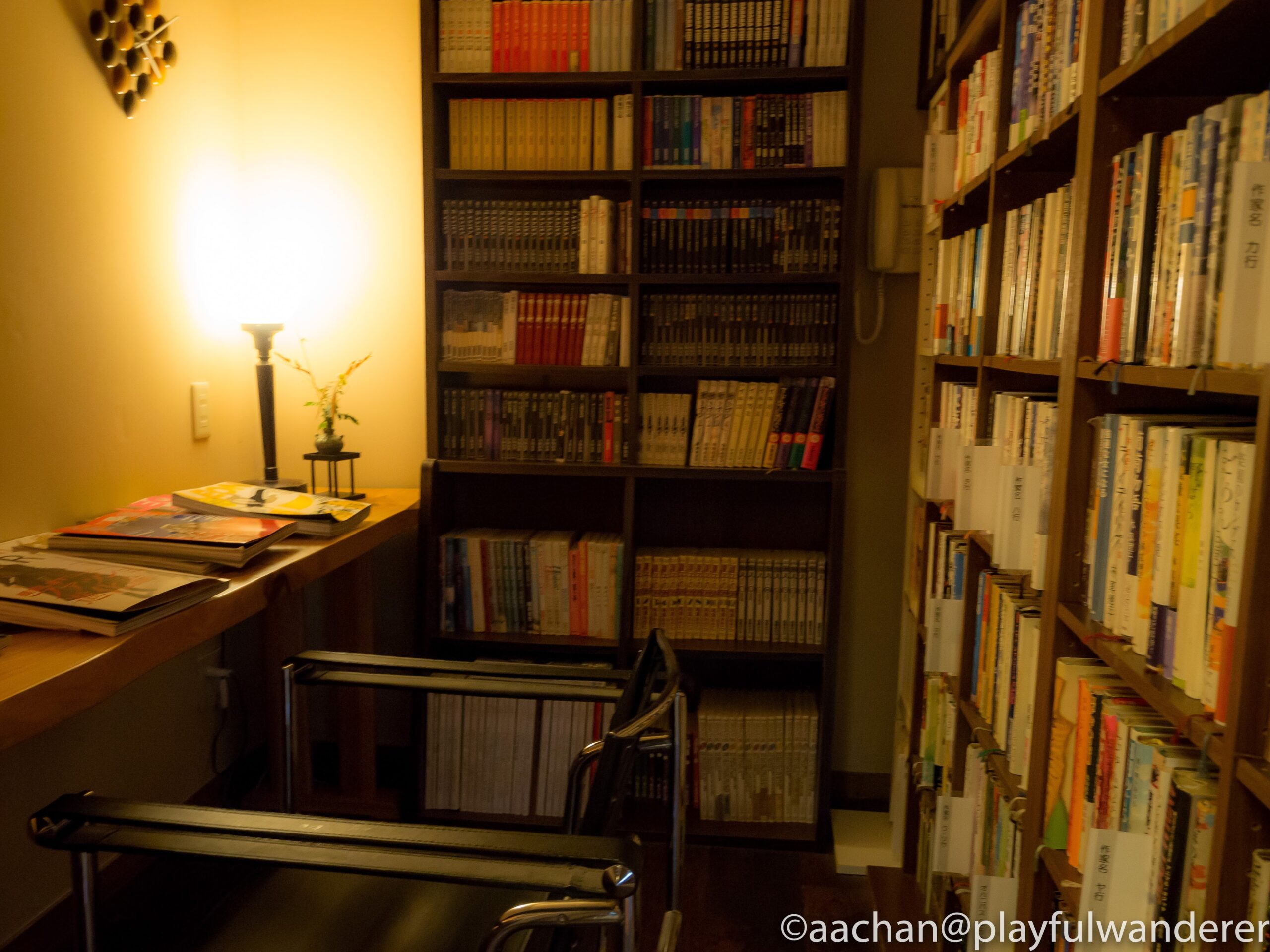 向かいには素敵な書斎もあって、漫画や小説、雑誌なども一面にあり、滞在中も退屈しない。