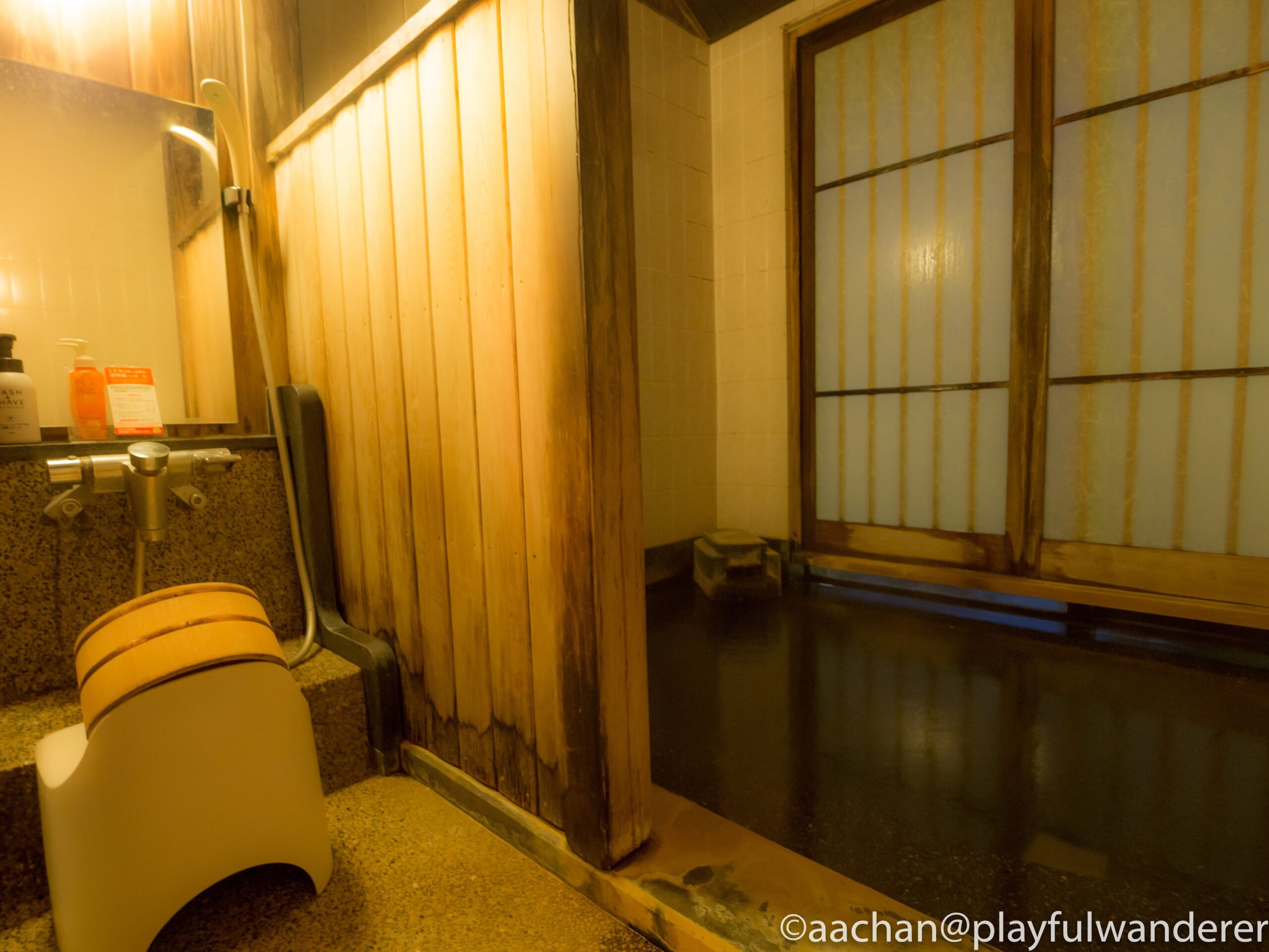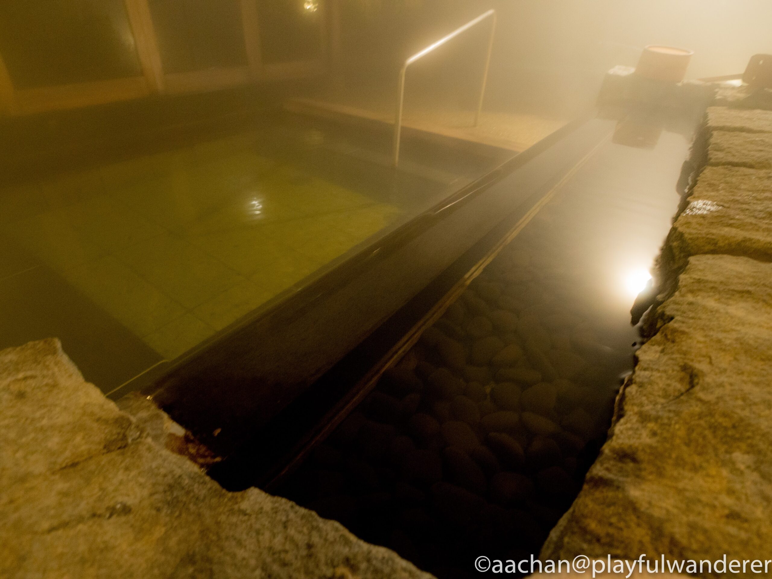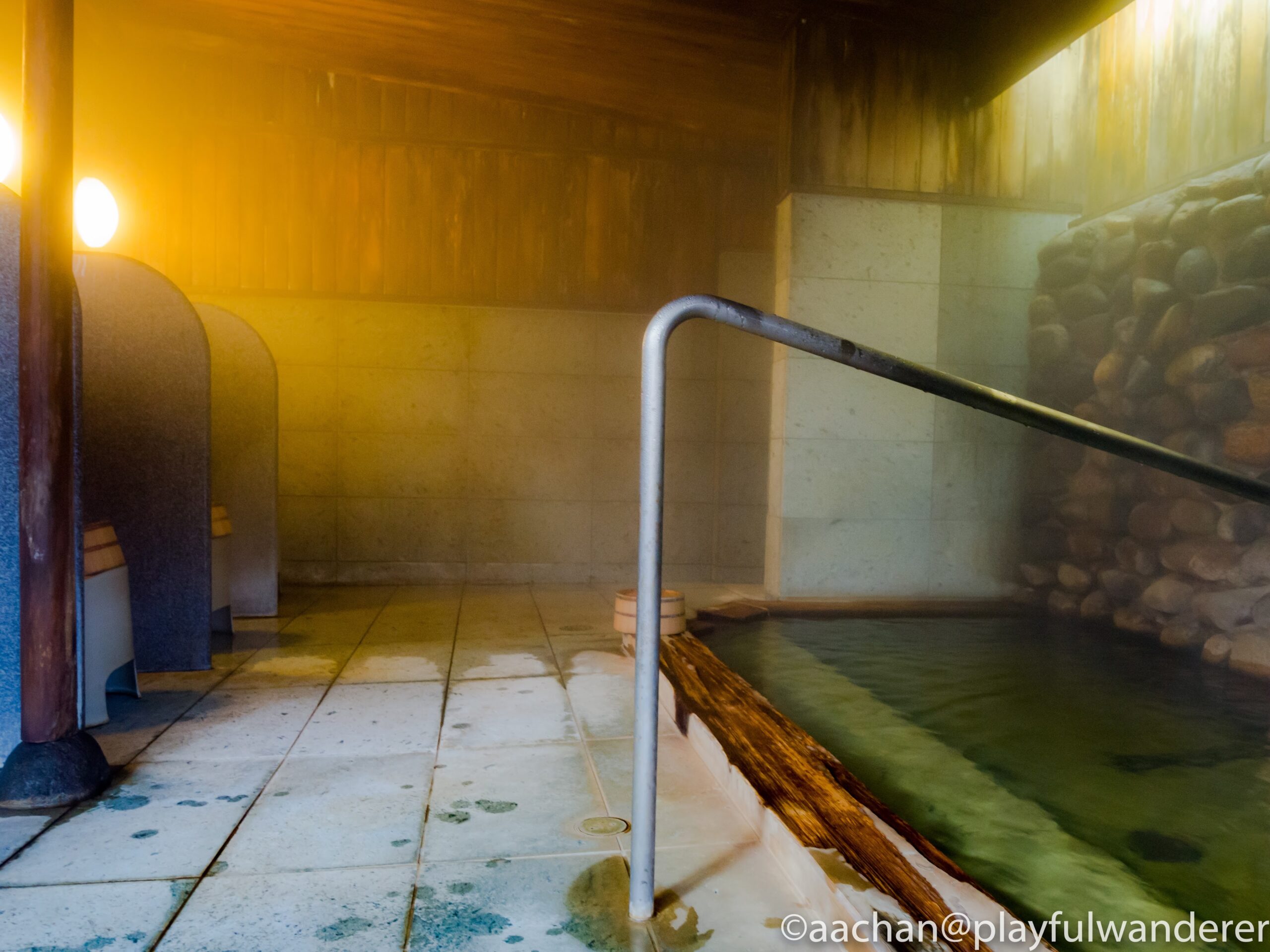 最初女性の方は石壁の内風呂。そう大きくはないけどゆったり手足は伸ばせる。