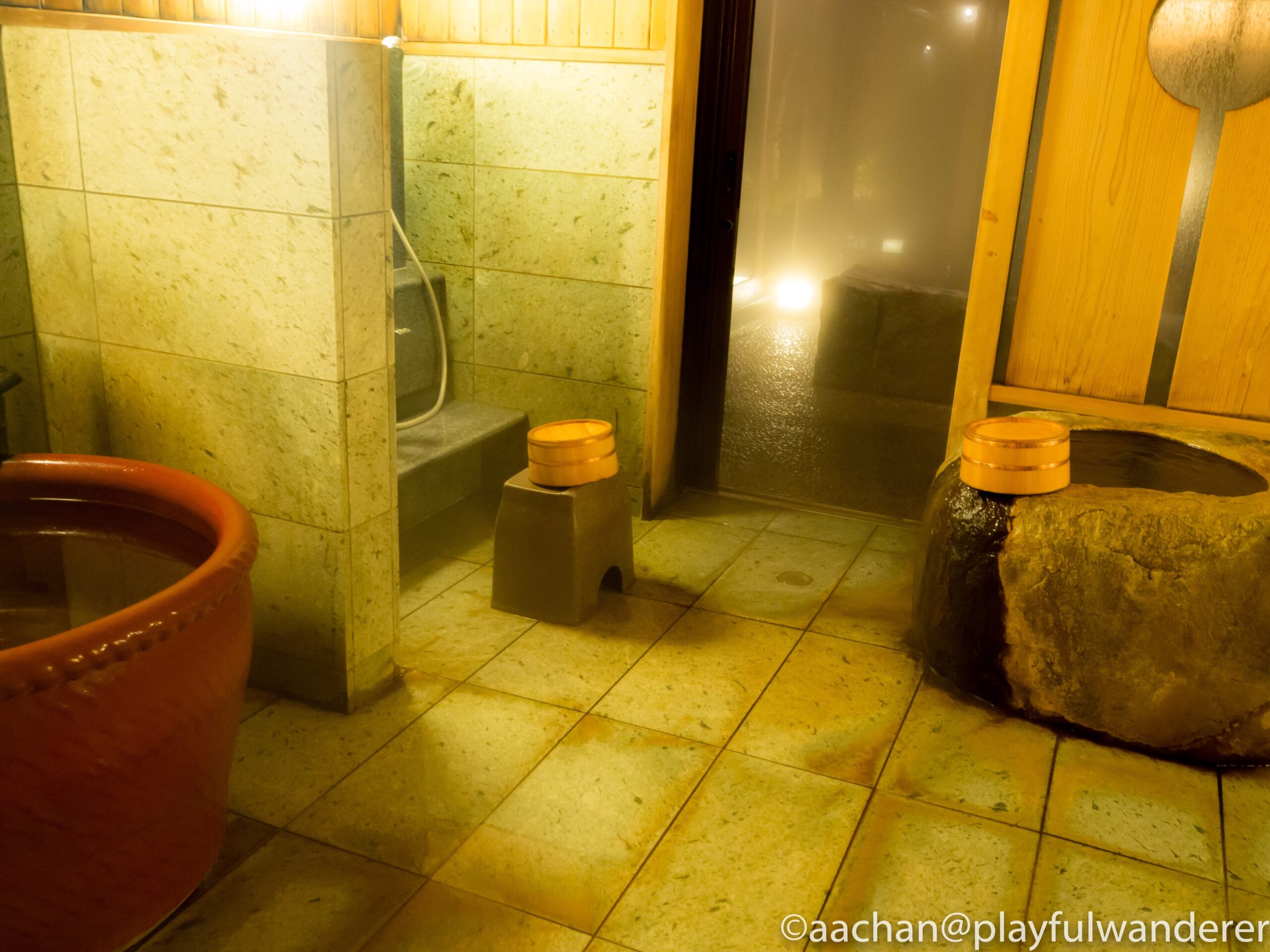こちらはサウナがついていて、壺の水風呂が可愛い。