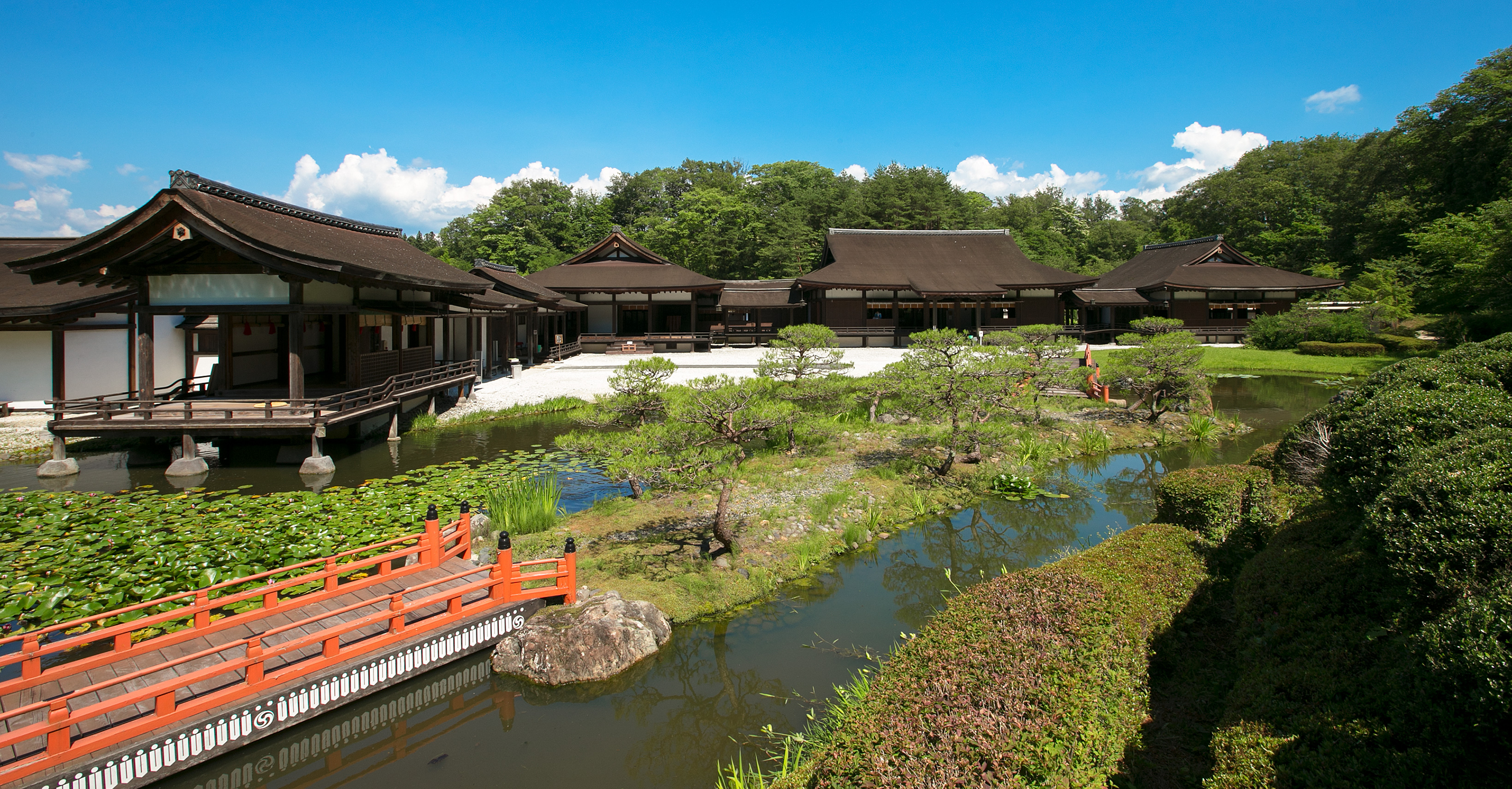 見た目は渋い平屋ですが、細かく分かれた部屋を渡り廊下でつなぎ、寝殿造の様式で、とにかく半端ない広さ。