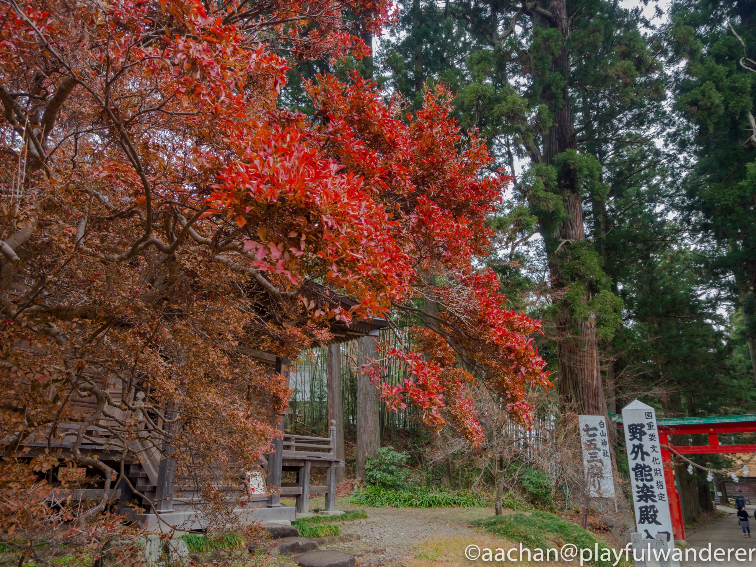 奥に白山神社と伊達藩奉納の能楽堂があるのですが、能楽堂は修理工事中でした。