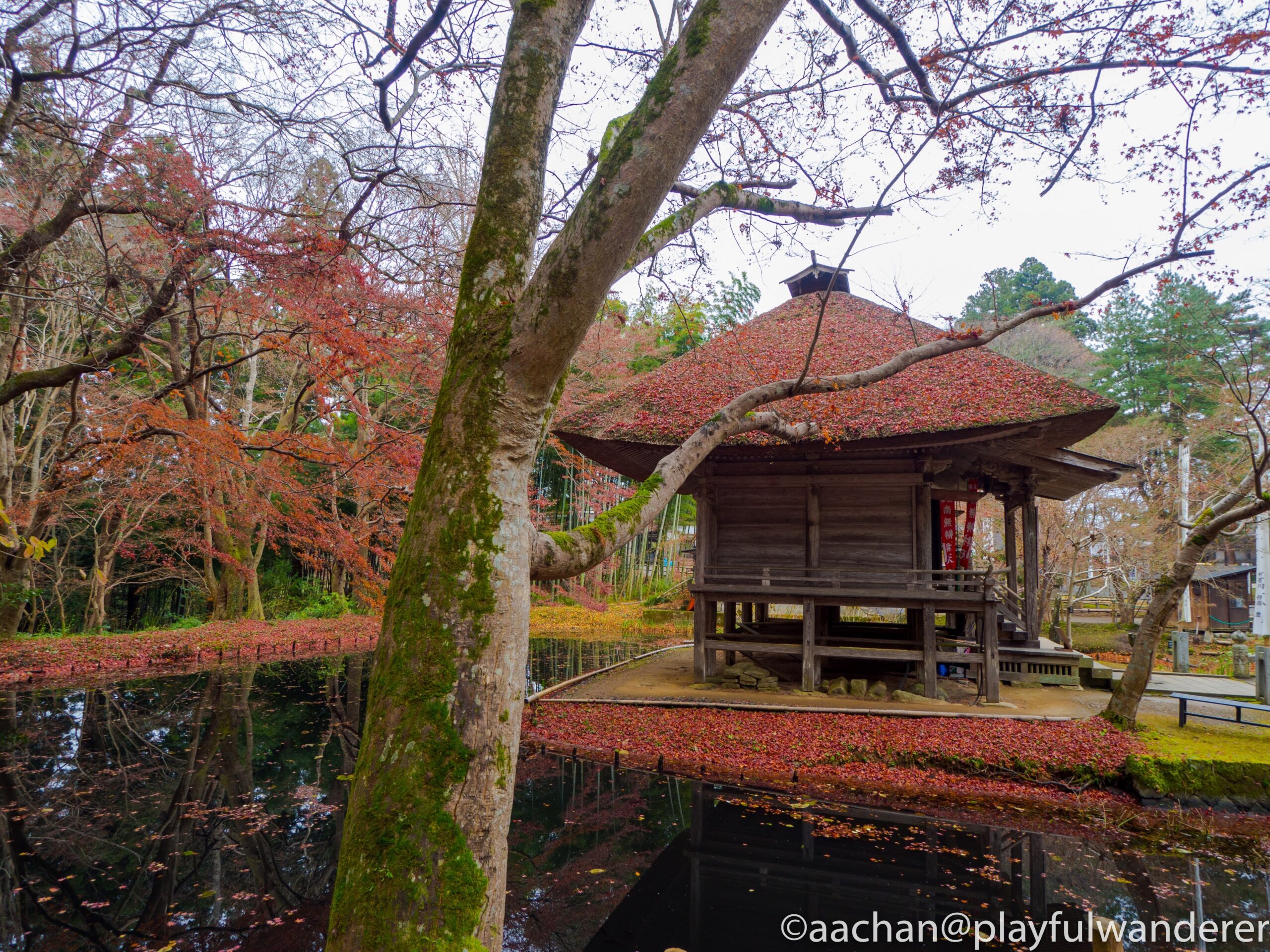 弁天堂の周囲は池になっているので、どの季節に来ても絵になる。