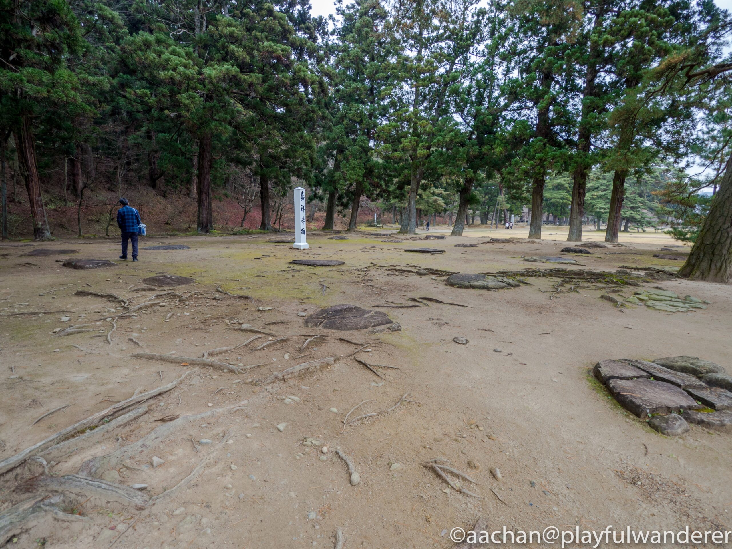 嘉祥寺跡。今は礎石を残すのみ。