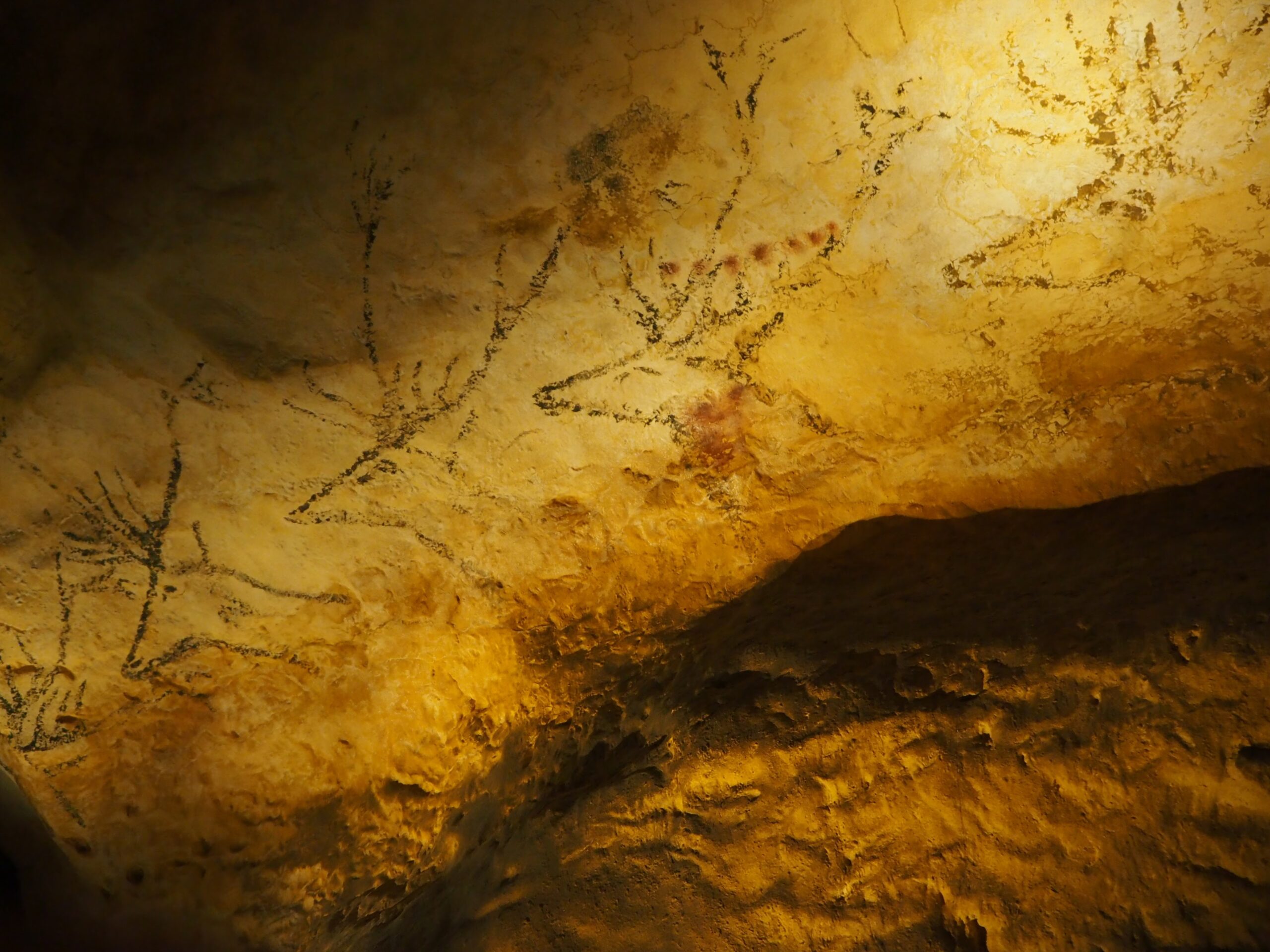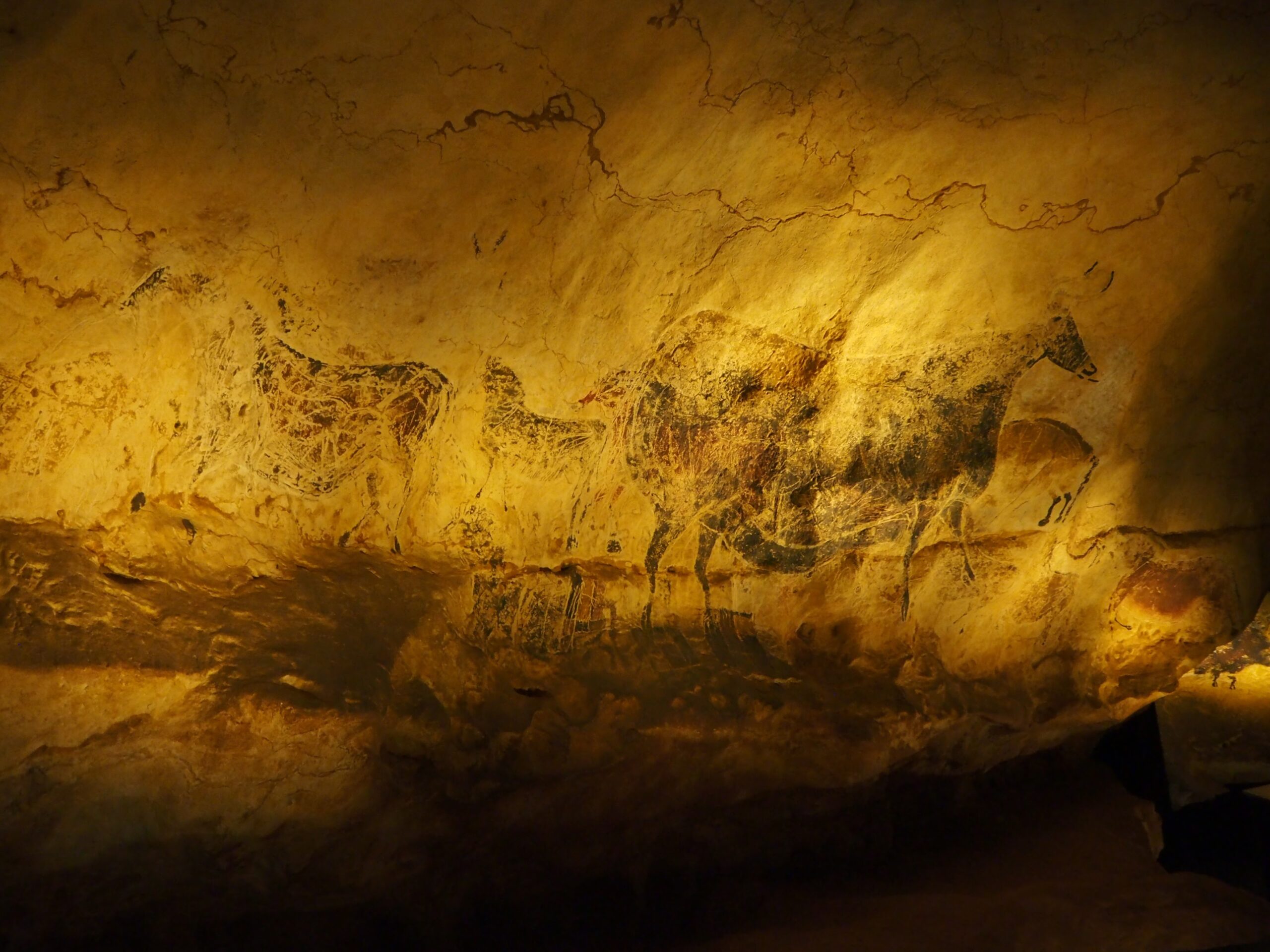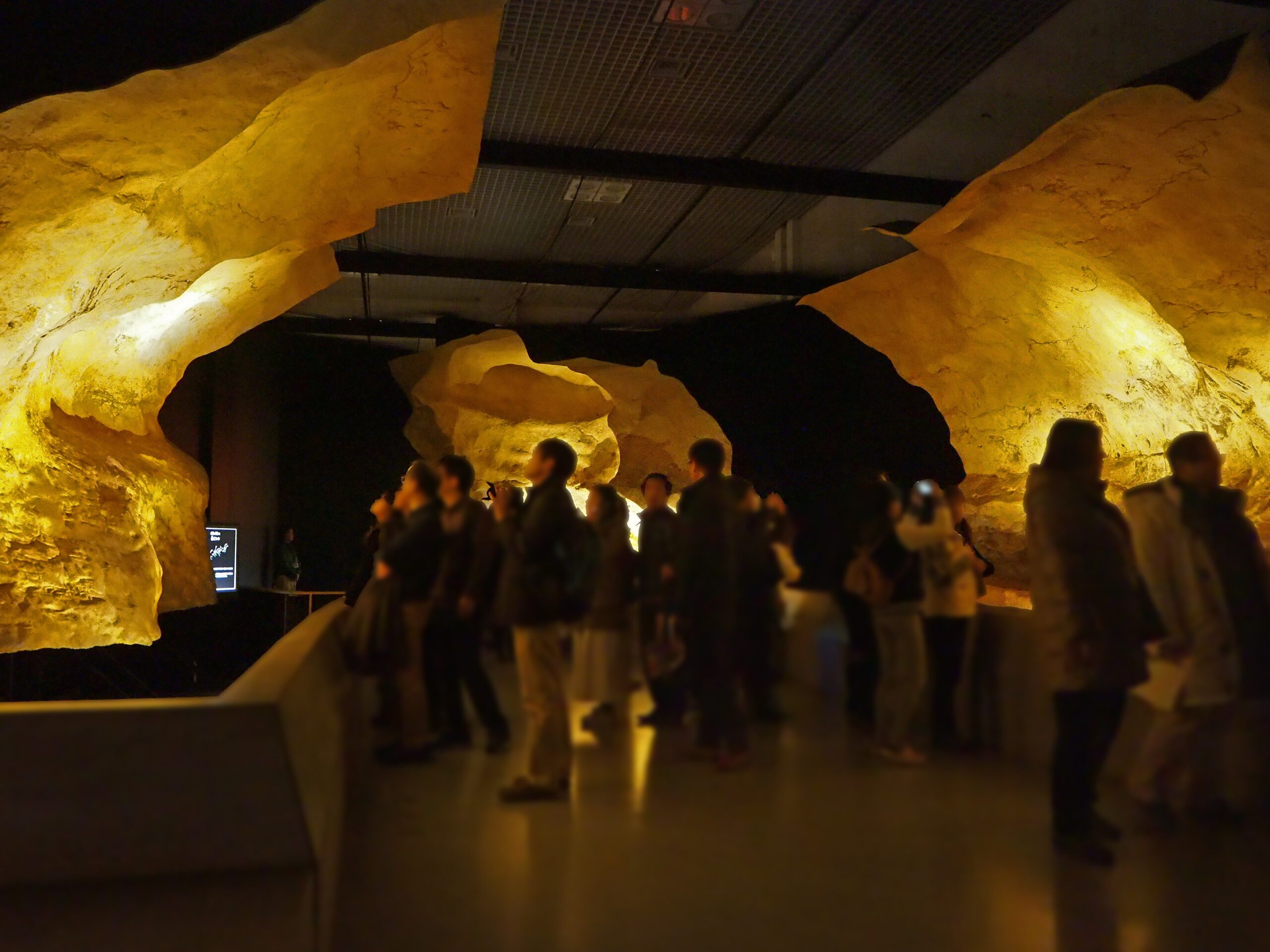 ラスコー洞窟の各部分を縮小した模型の部屋は、壁画は描いてないが形状がよくわかるよう覗き込めるようになっている。