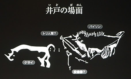 一目でなんの動物かわかりやすい他の壁画に比べて、一番よくわからぬものが描かれている。