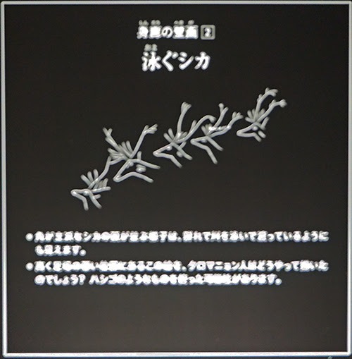 首だけ並んでたくさん描かれているのは、群れが川を渡っていく様子を描いたもののようだ。