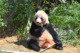 まずはお母さんパンダのシンシンがお食事中の屋外展示場を観覧。