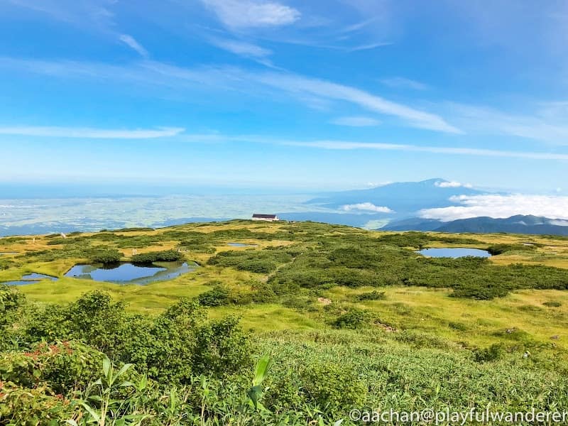 今朝宿坊で用意してくださったおにぎりを携えて出発。駐車場自体標高が高いので庄内平野を見下ろす景色が気持ち良い。