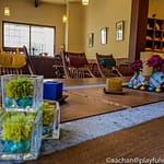 子マヌルたちはお土産屋との境のガラスケースにいましたが、休憩中で目隠しされていたので、後で開く時間にまた訪れます。