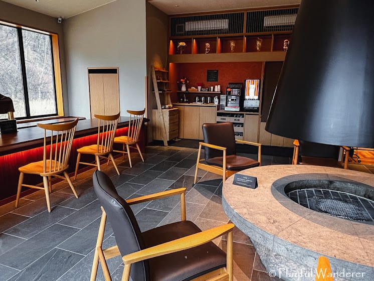 夕食後はロビーの焚き火暖炉にて焼きマシュマロも振る舞われる。