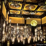 城が2つ、鄙びた日本の四季、工場地帯、夜景の街並みなどが盛り込まれていて、数多くのシャンデリアのような天井照明が幻想的なムードを高めている。