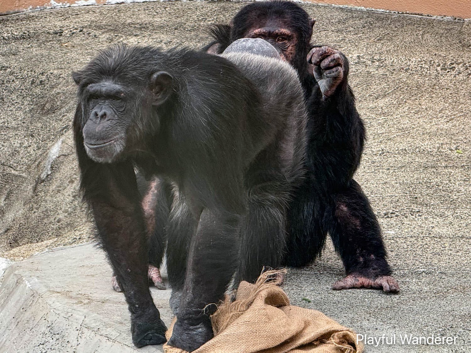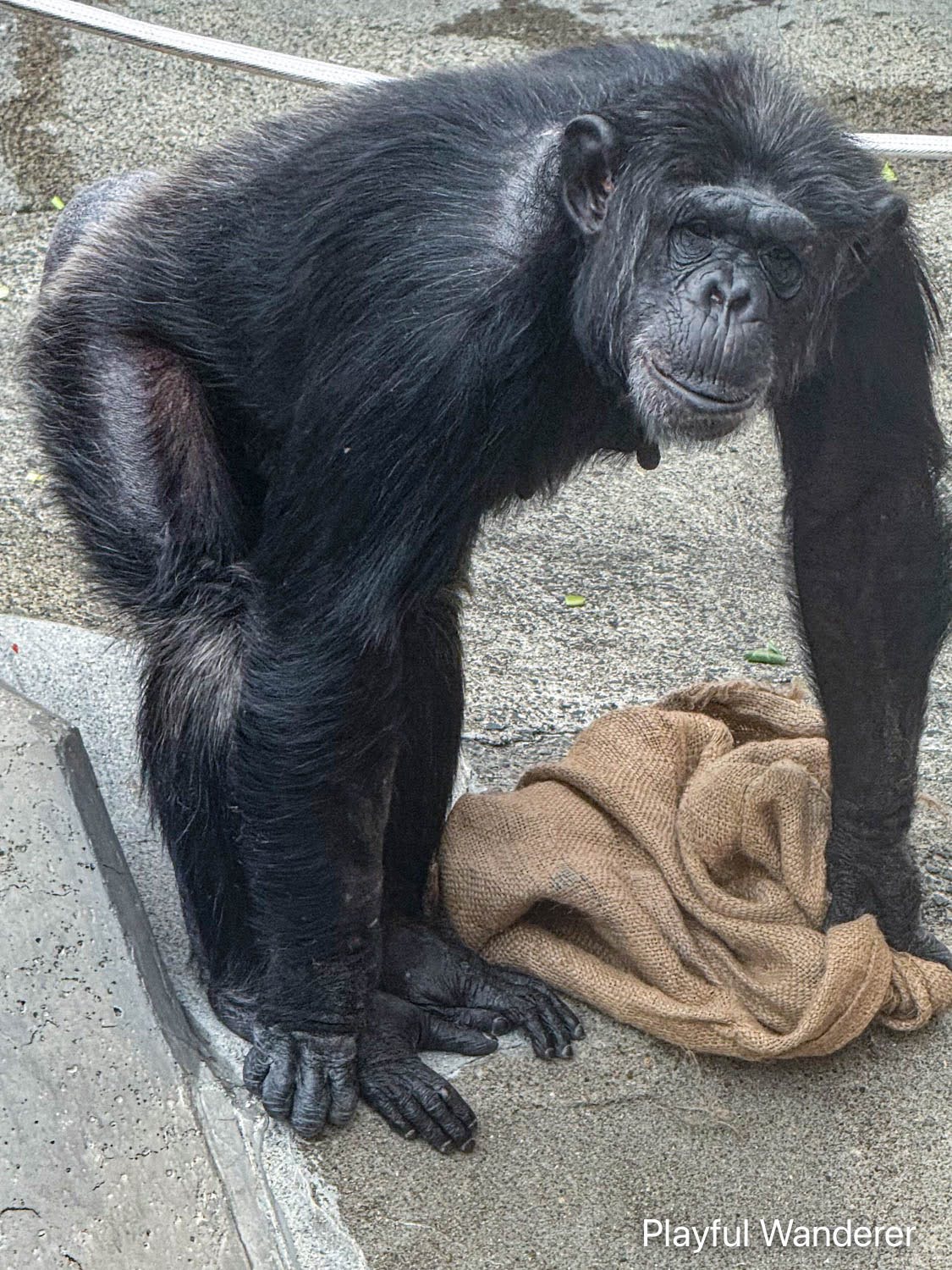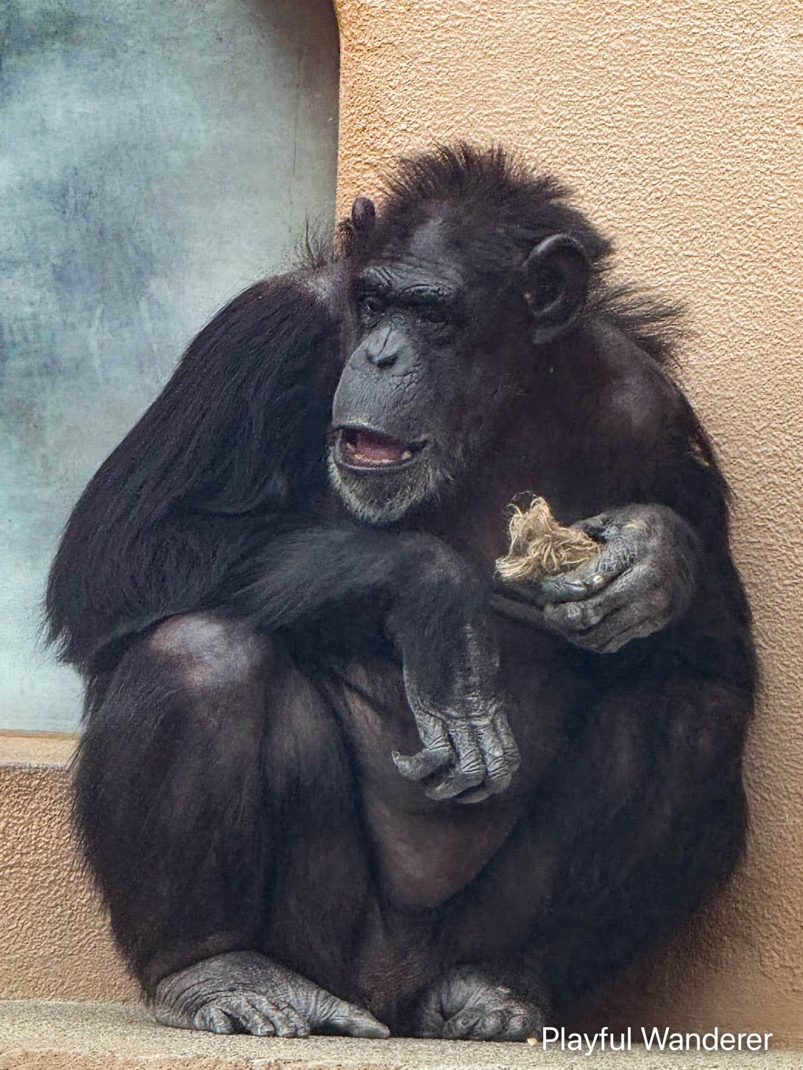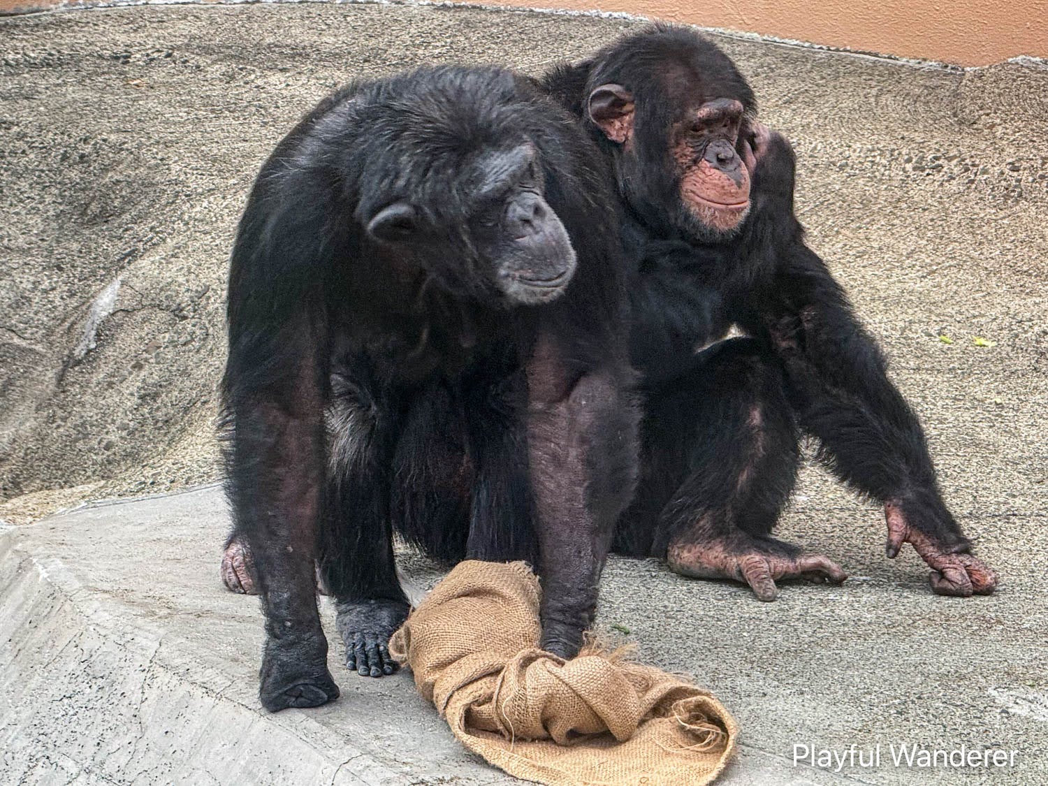 ほんとチンパンジーってふとした表情やしぐさが人間にそっくりでおもしろい。