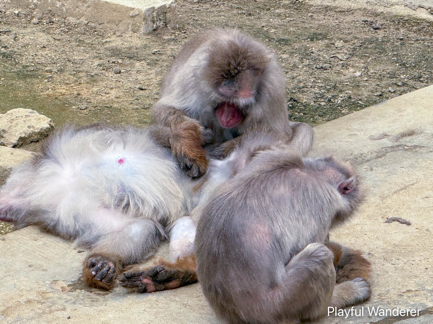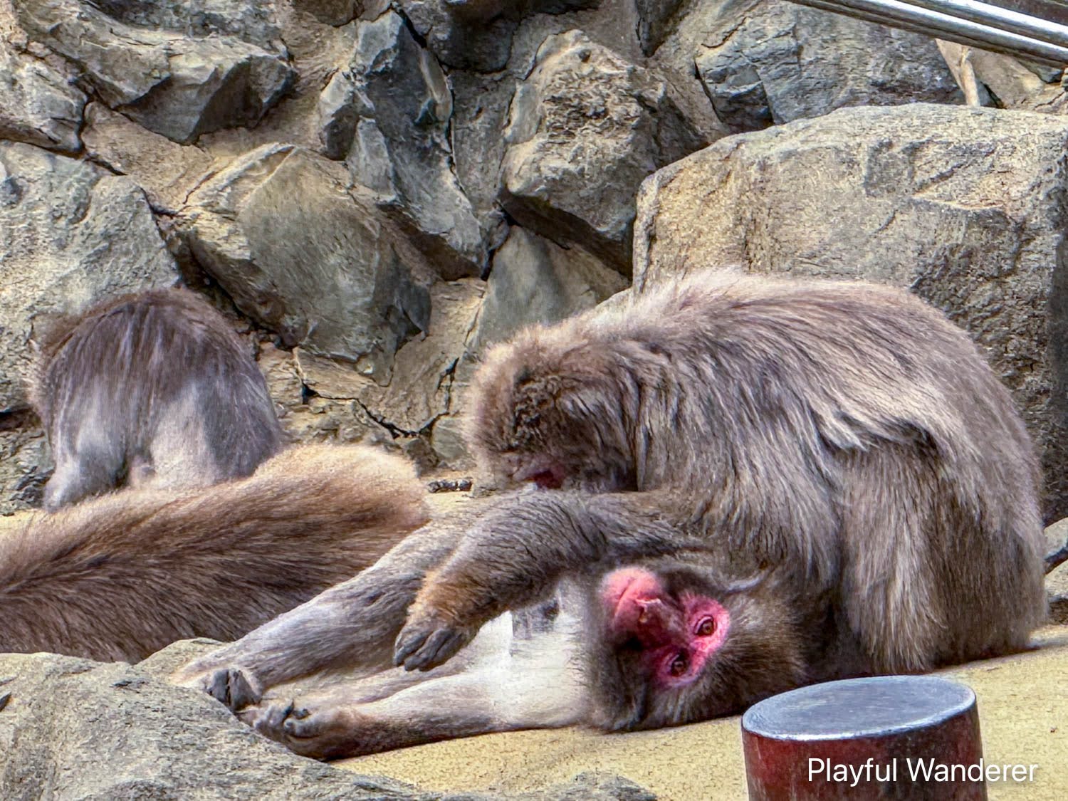ニホンザルの猿山もこちらの方にあります。あちこちで丁寧に毛繕いしていて気持ち良さそう。