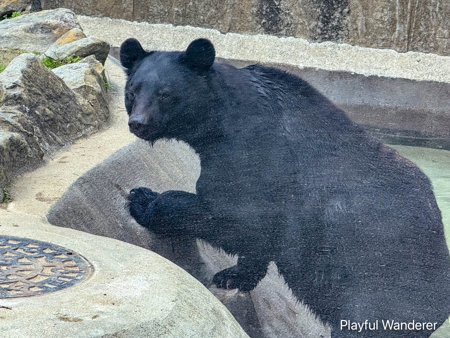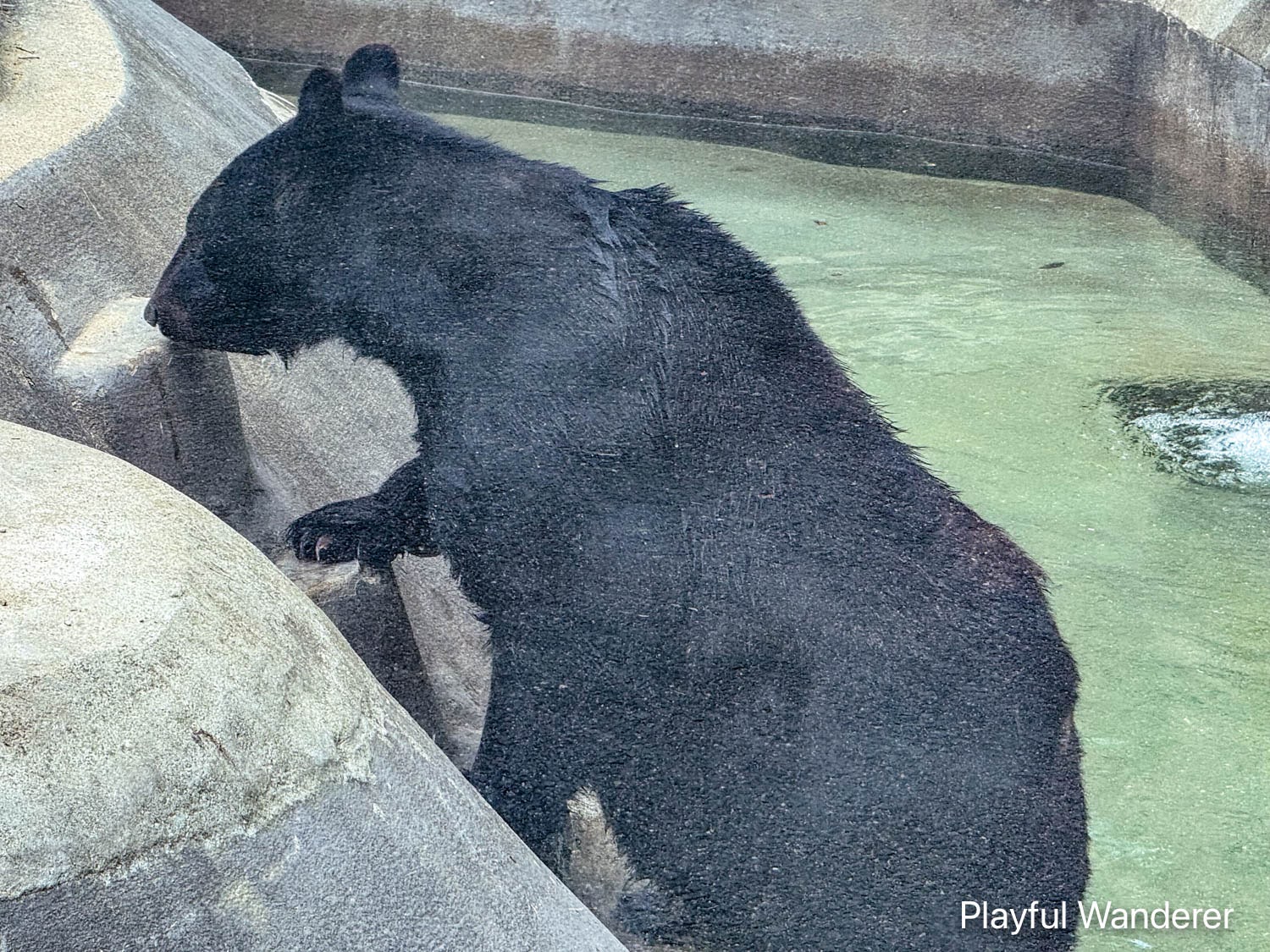 ツキノワグマは水浴びしてました。去年から熊害が多く報告されていますが、動物園にいるとおとなしくて可愛さもあるんですけどねえ。。
