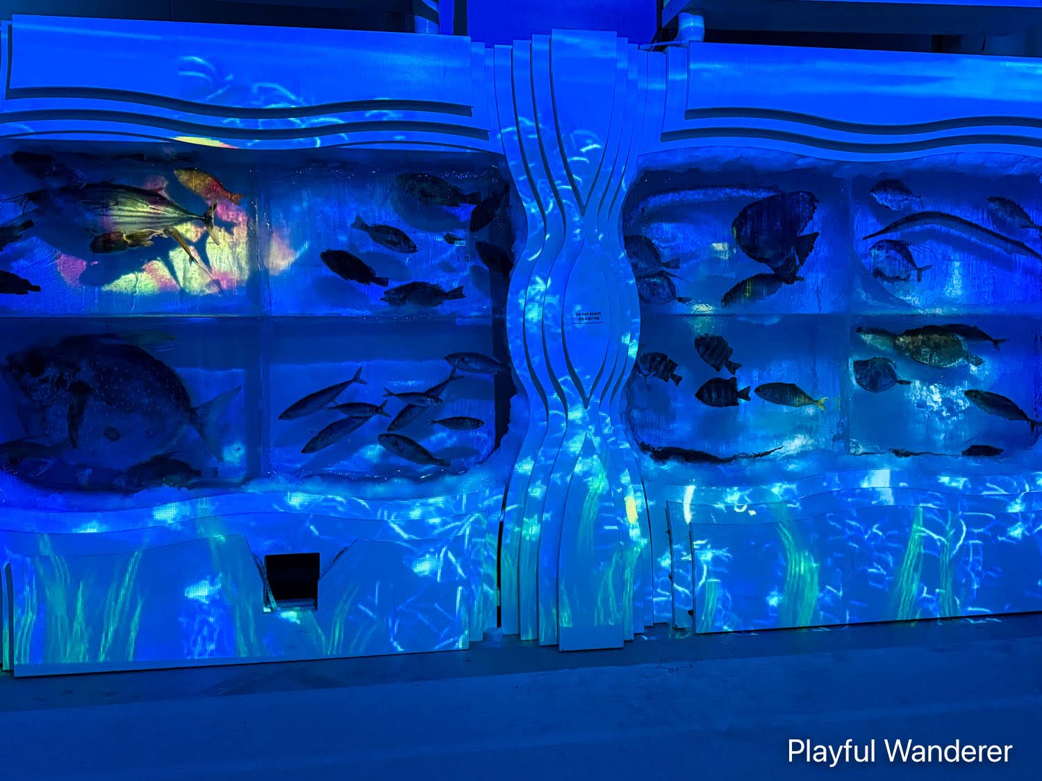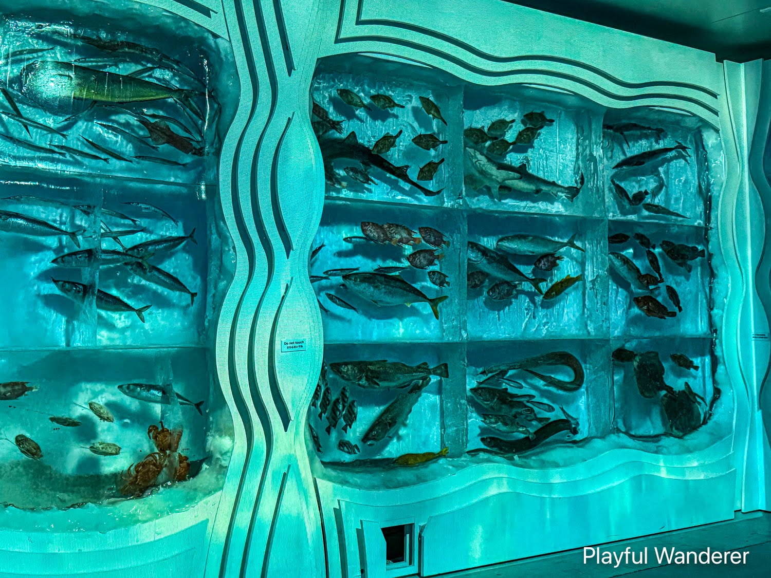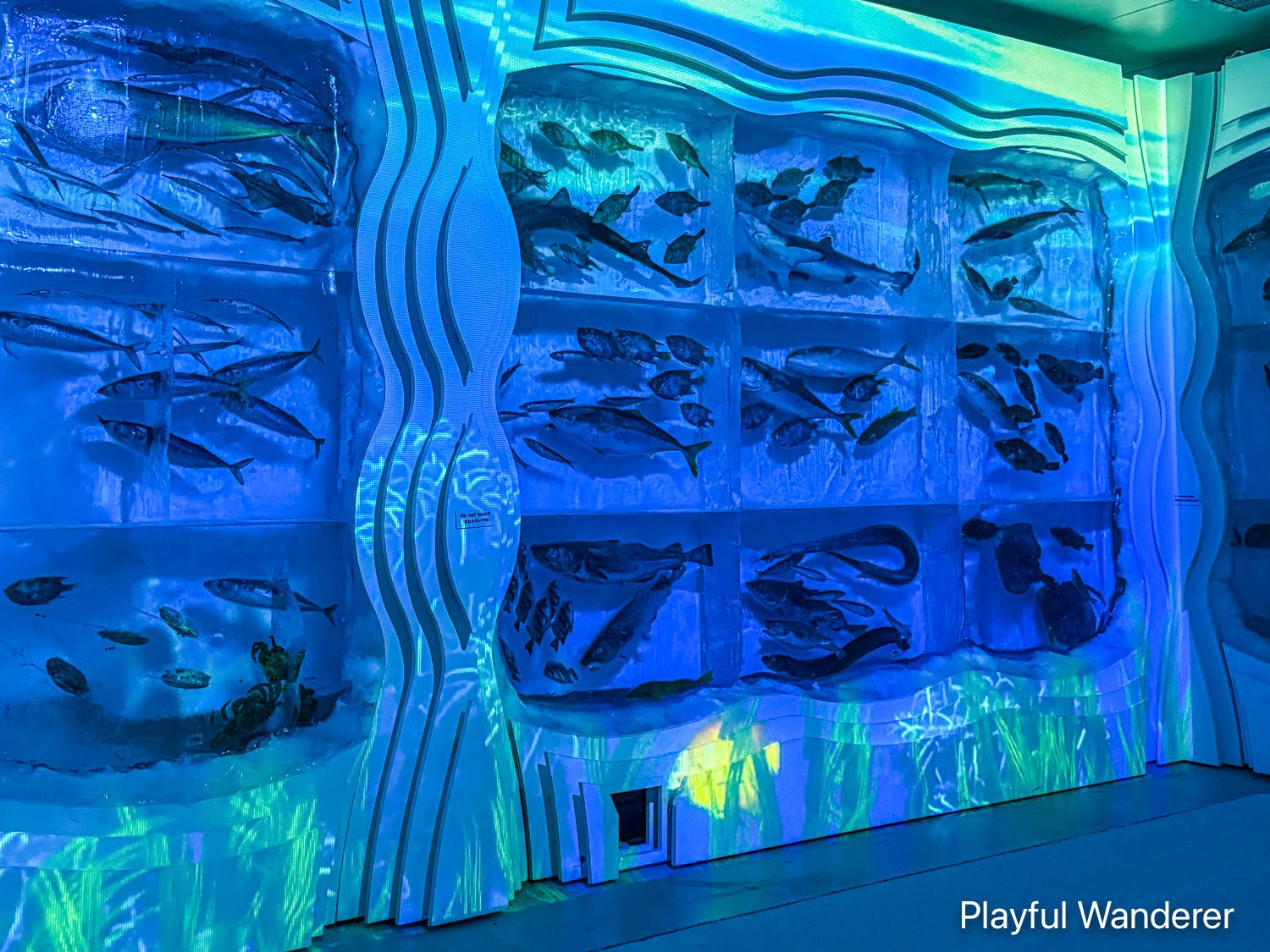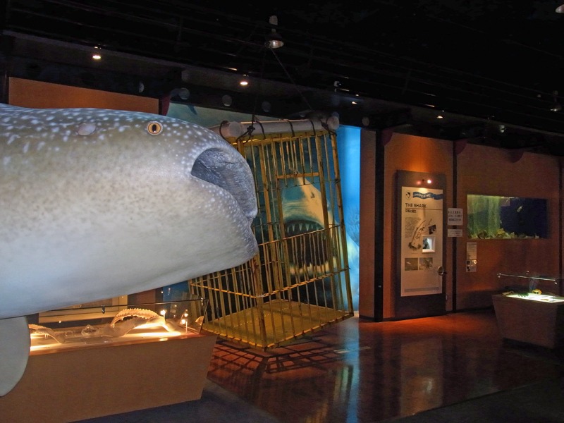 以前は端の方に映像コーナーがあり、生きたサメの水槽がたくさんあって、タッチプールもあって、半分水族館みたいな雰囲気だったんですが。。。