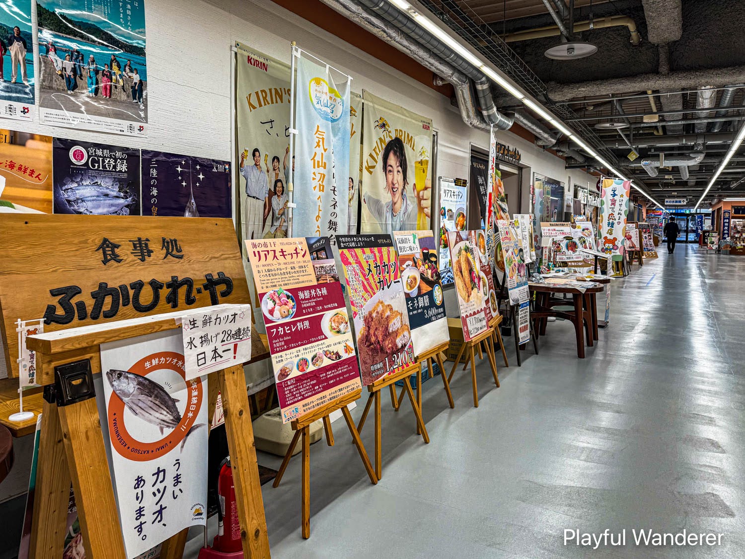 堂々としたショッピングセンターのような作りになってますね。漁港すぐ近くなので、脇が魚市場となっています。